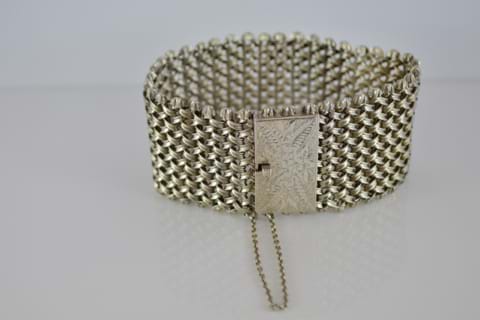 This stunning antique bracelet is dated circa 1900 and is hand crafted in sterling silver. Featuring wide grooved spiral links and a large engraved box clasp this bracelet is both unusual and simplistic. Independent Valuation Supplied