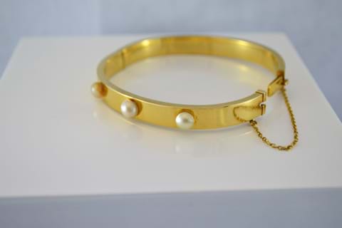 SOLD Vintage Hardy Bros! 18ct Keshi Pearl Bangle