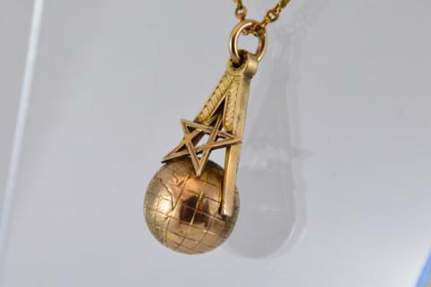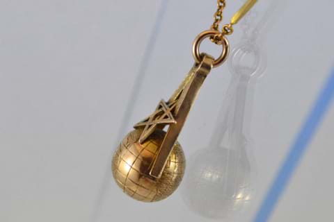 A hollow engraved globe with the Masonic star and compass at the top in 9ct yellow gold. Dated circa 1900 this piece is a great addition to a Masons collection. Independent Valuation Supplied