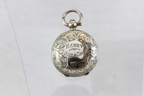Hallmarked Birmingham 1913, this sterling silver engraved sovereign holder features beautiful scroll engraving as well as the words "Harry from mum & dad". The perfect gift for your son Harry