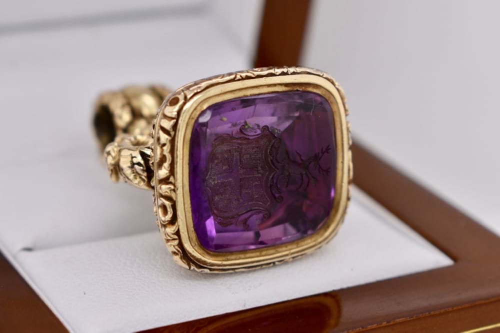 SOLD 14ct & Rolled Gold Amethyst Intaglio Seal