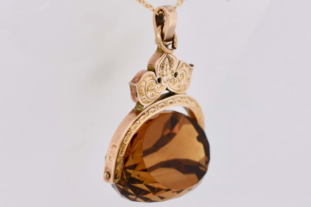 SOLD Antique 10ct Yellow Gold Smokey Quartz Spinner