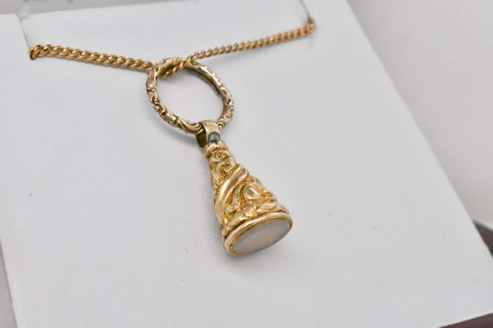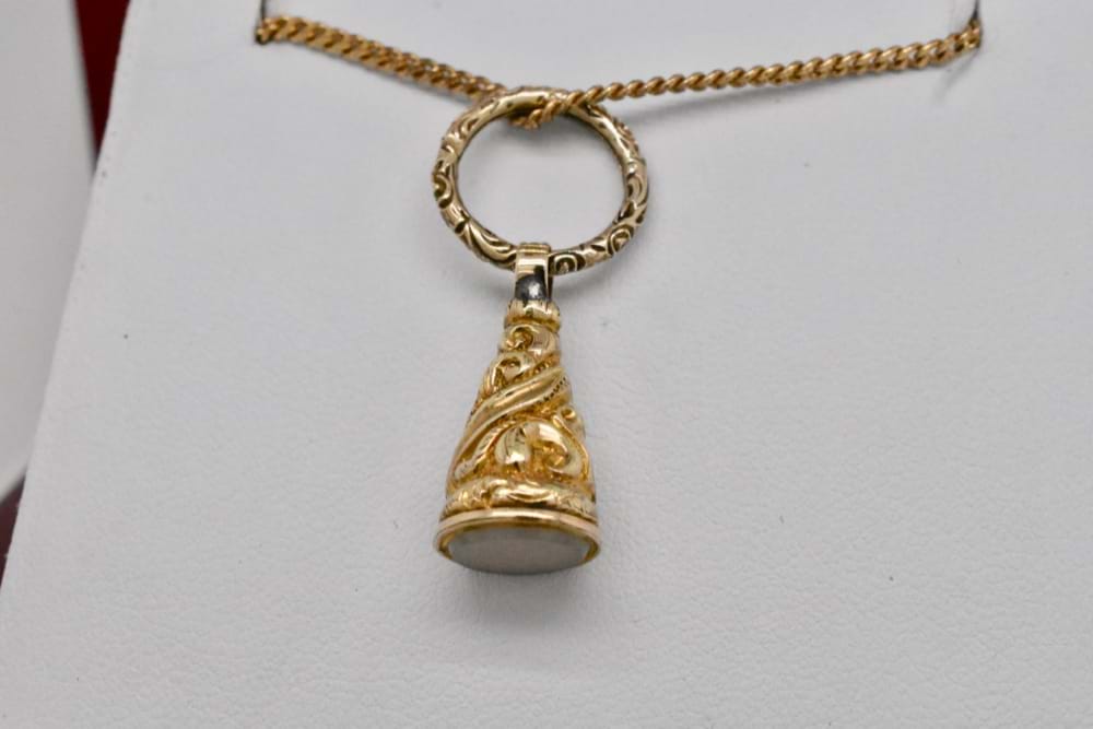 An adorable, gold cased, miniature seal with an even more rare antique split ring attached. Circa 1880