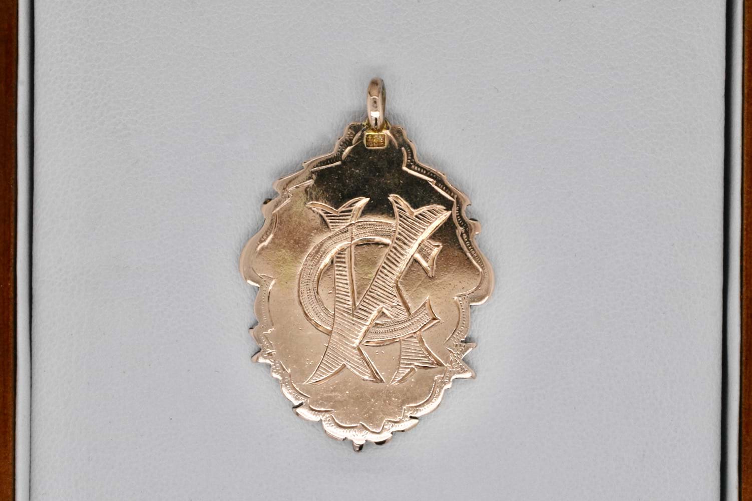 SOLD 9ct Gold 1906 'CK' Shield Pendant