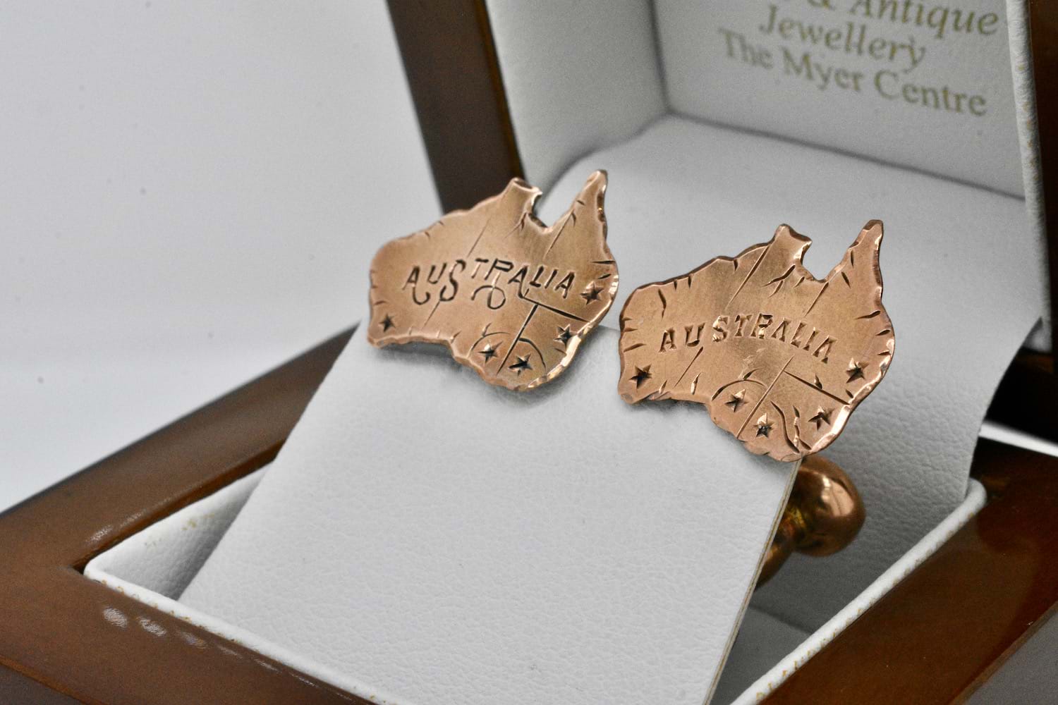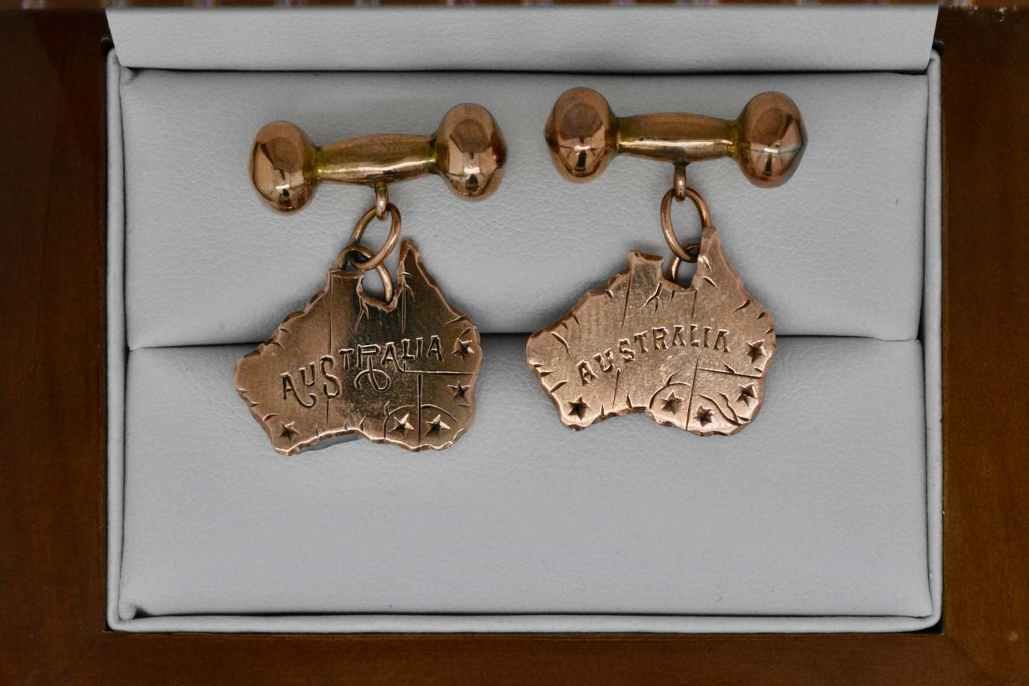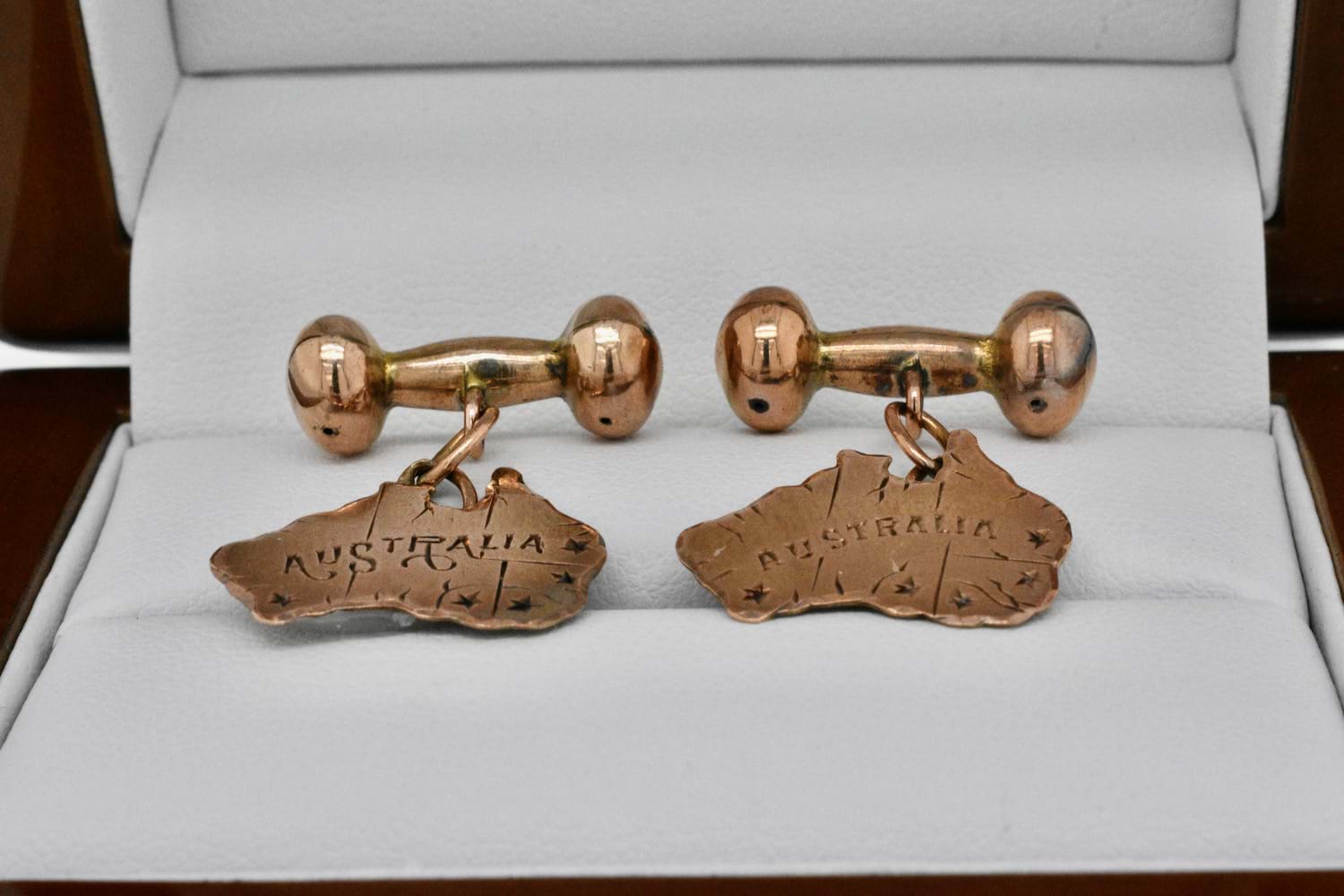 Vintage pair of 9ct rose gold cufflinks in the shape of Australia with "AUSTRALIA" engraved