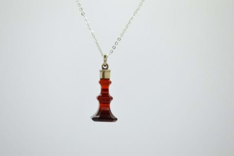 Carved entirely out of carnelian this beautiful little seal features the intials "EW" as an entaglio seal on the base and is displayed on a fine silver chain