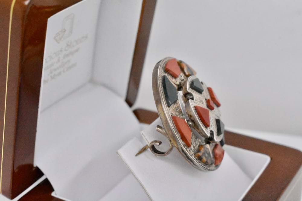 Sterling Silver Scottish antique brooch with an agate set geometric pattern