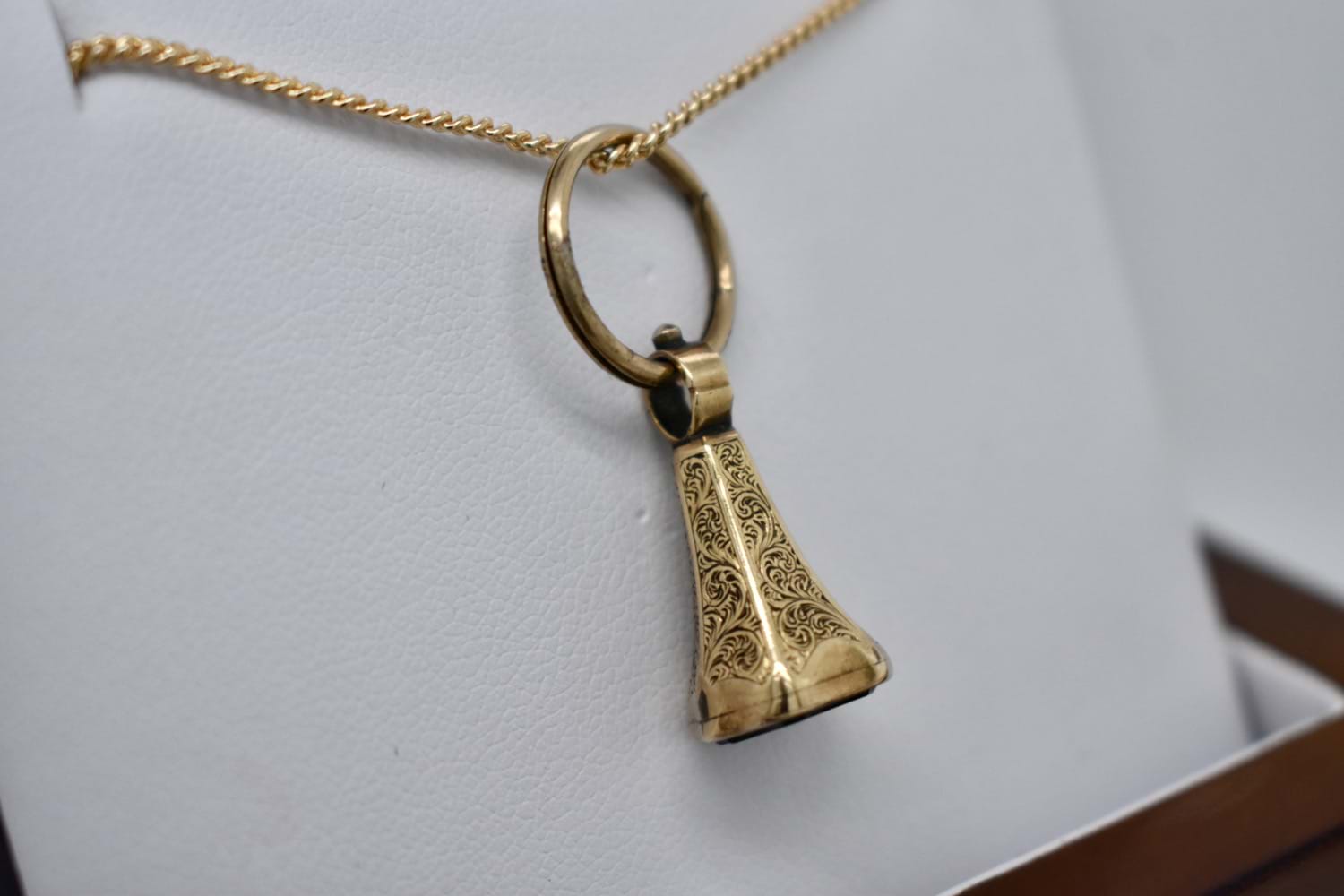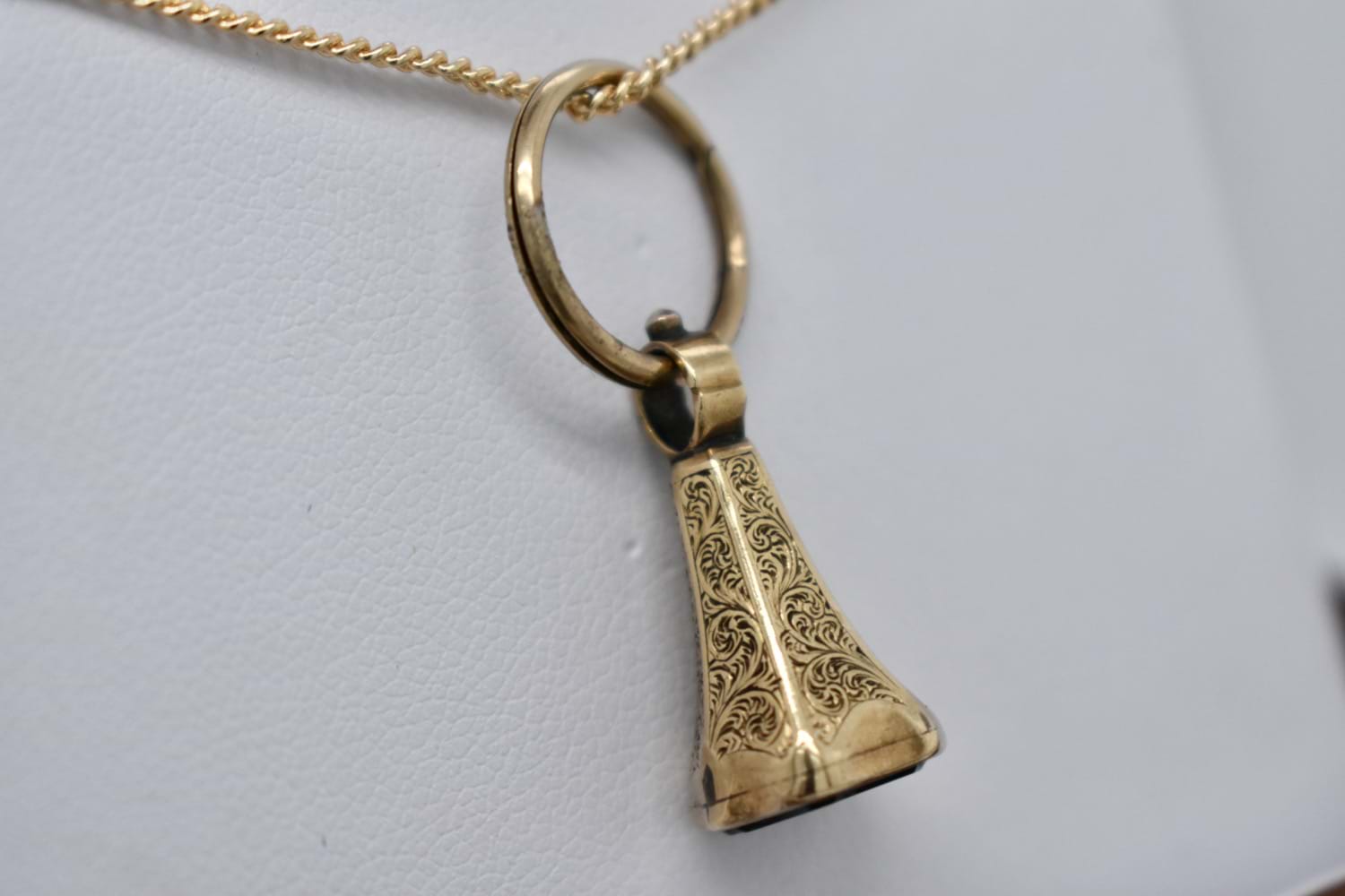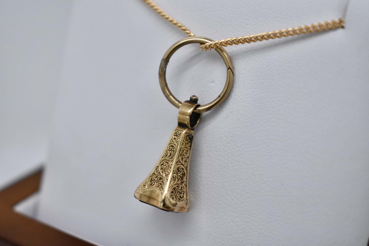 This lovely antique seal and antique split ring is gold cased and features a Griffin intaglio in the bloodstone base. Chains available for separate purchase.