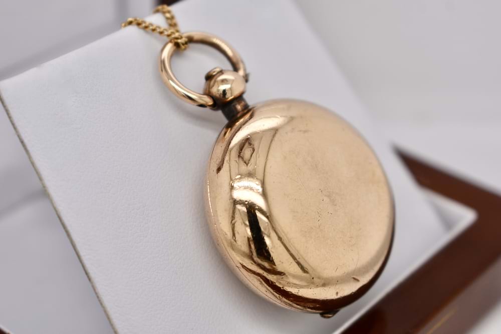 This plain, highly polished antique sovereign case is rolled gold and is dated circa 1890. The piece is plain front and back and has a working spring panel inside to hold a sovereign coin. A fantastic piece to suspend from an antique muff or albert watch chain. Case measures approx. 35mm round. Independent Valuation Supplied