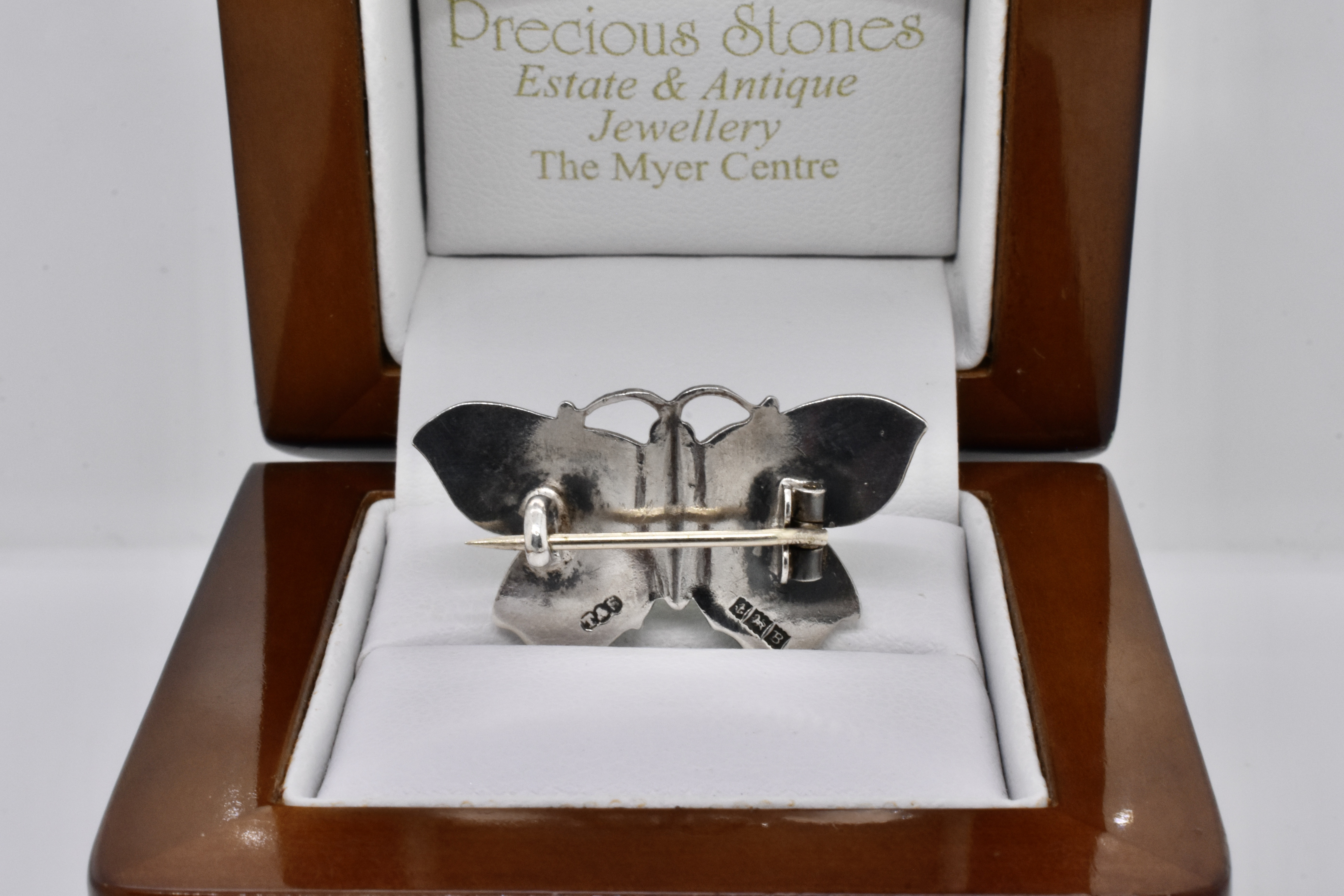 A beautiful hand painted green and yellow enamel butterfly brooch crafted in sterling silver and hallmarked Birmingham 1951, T&S maker mark. Brooch measures approx. 37x19mm