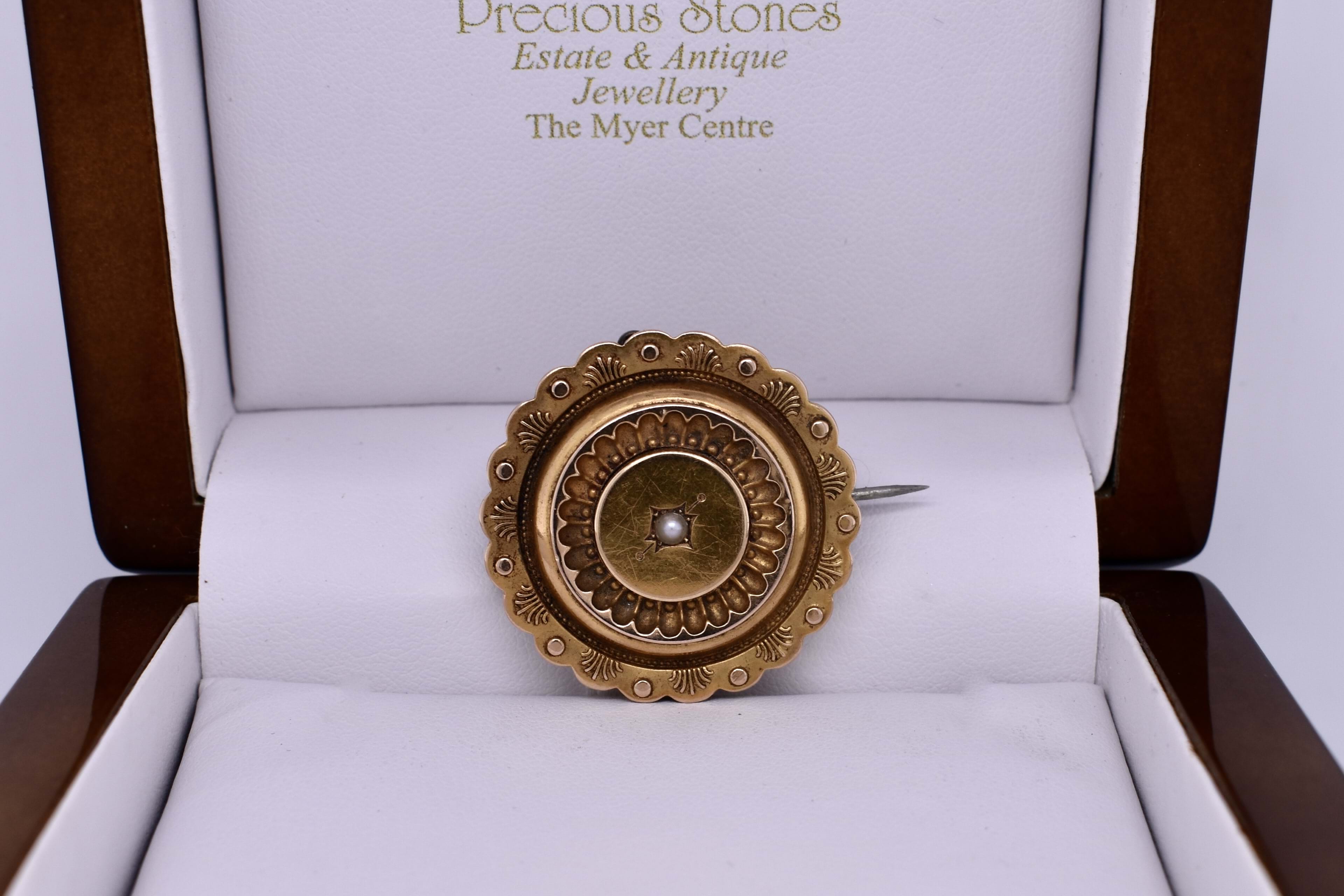 SOLD Antique 18ct Yellow Gold Seed Pearl Scalloped Brooch