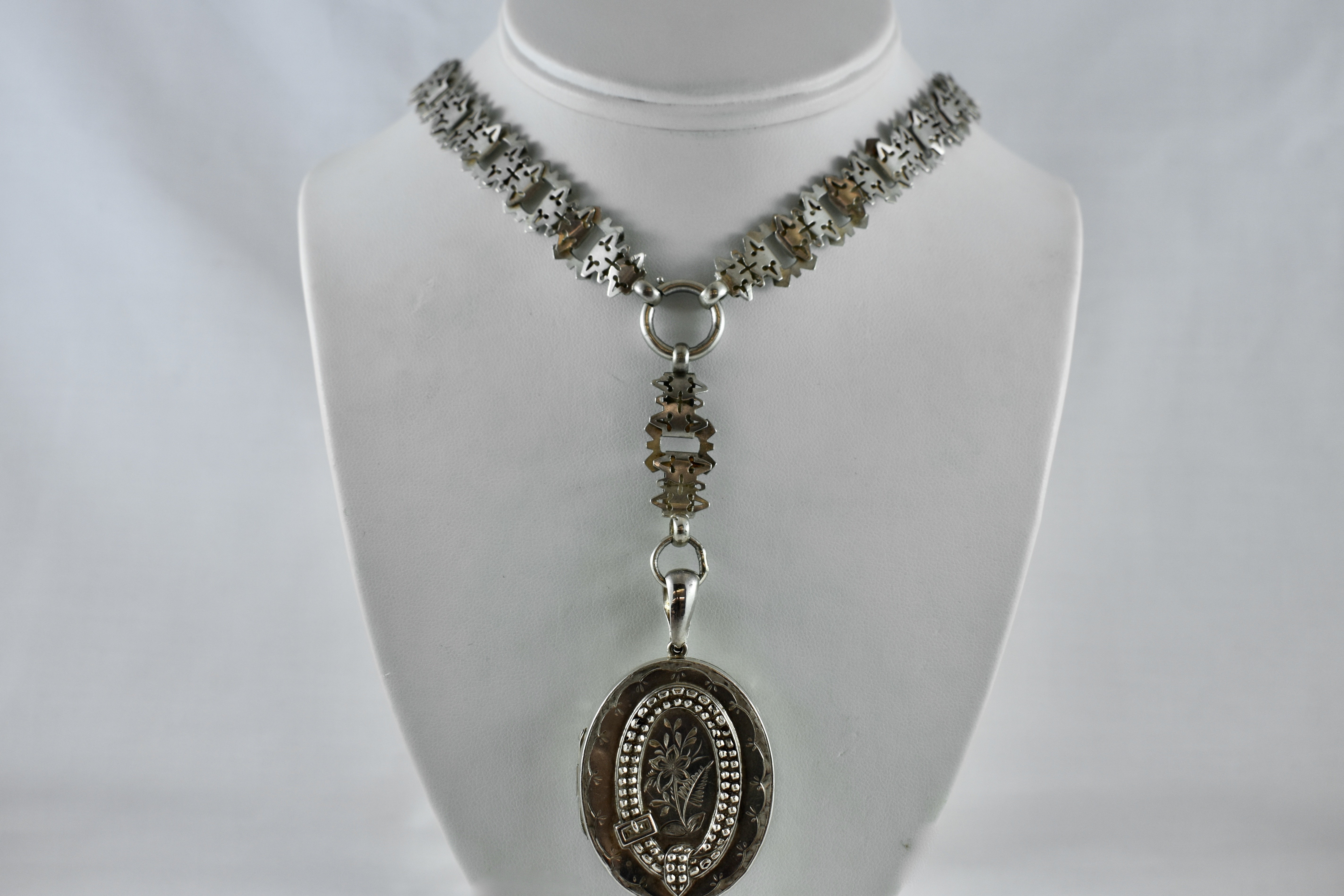 SOLD Sterling Silver Victorian Birmingham 1881 Collar and Locket 44cm