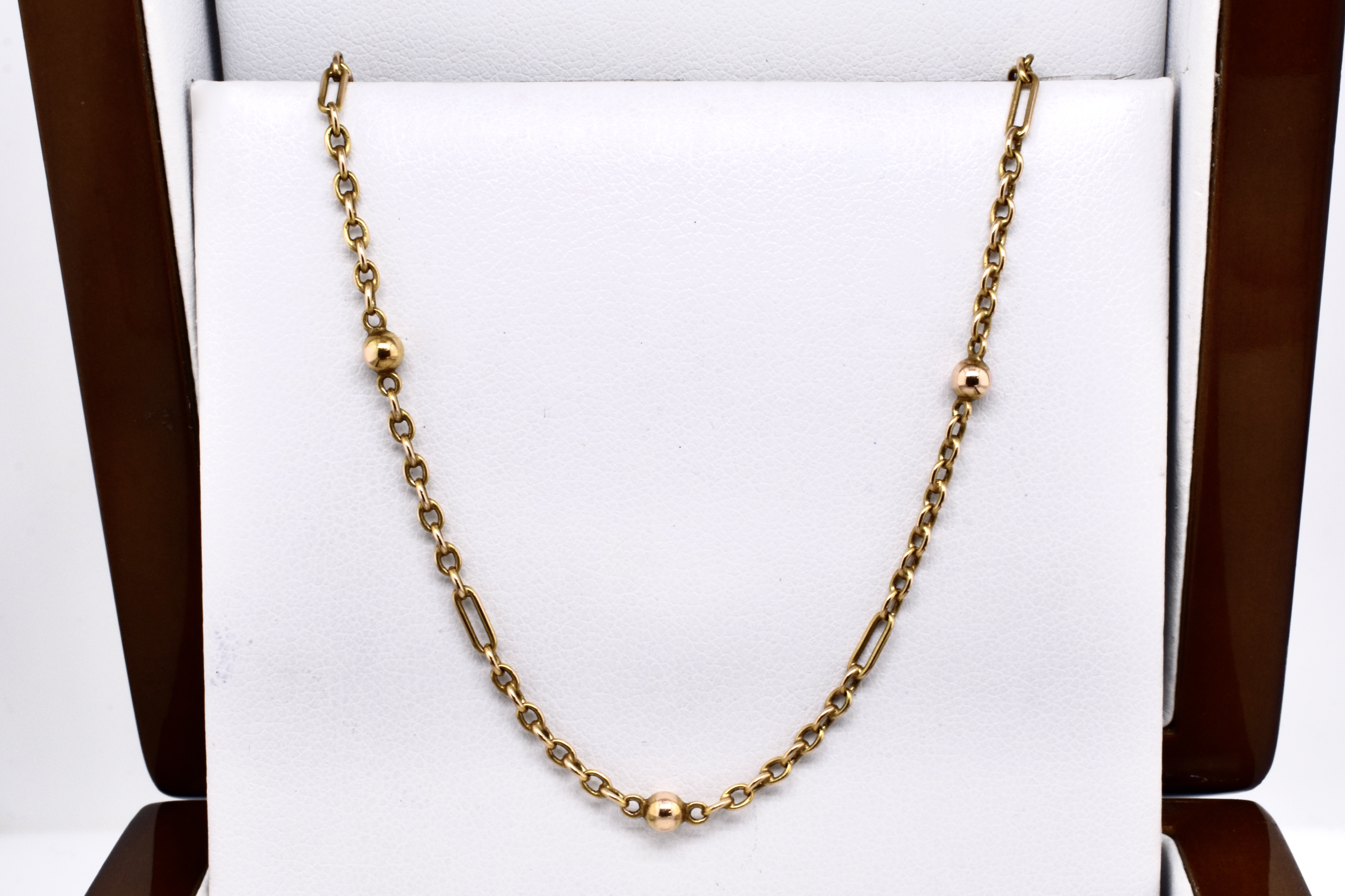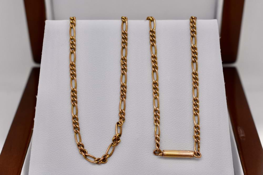 SOLD Antique 15ct Yellow Gold Cable & Figaro Link 45cm Chain