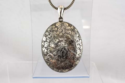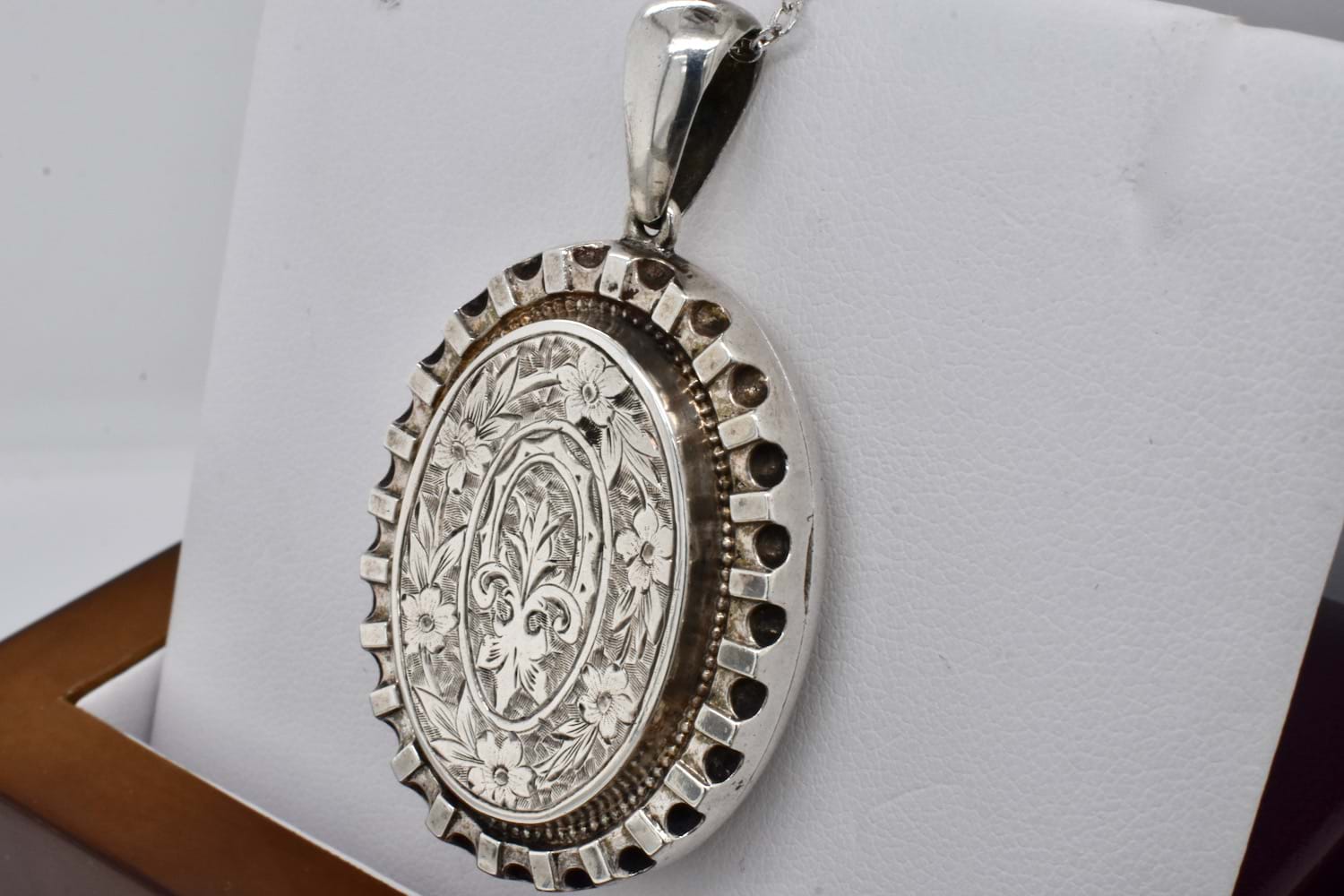 SOLD Sterling Silver Oval Engraved Leaf Pattern Locket Birmingham 1881