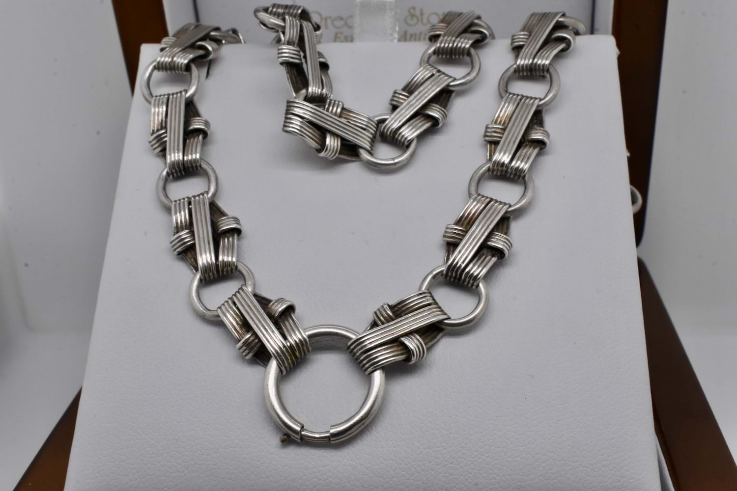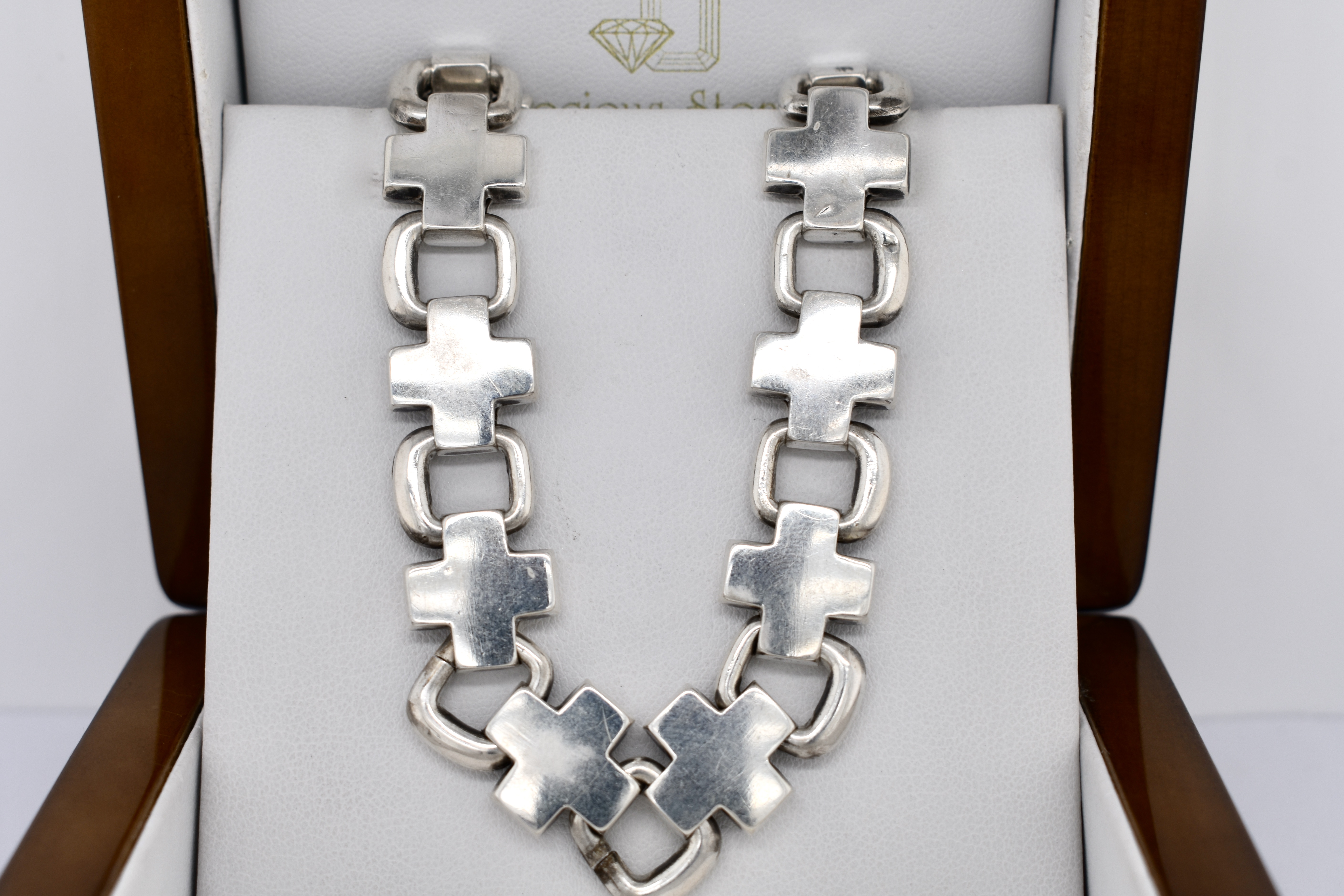 SOLD Sterling Silver Square Hollow Cross Link 45cm Collar Circa 1890s