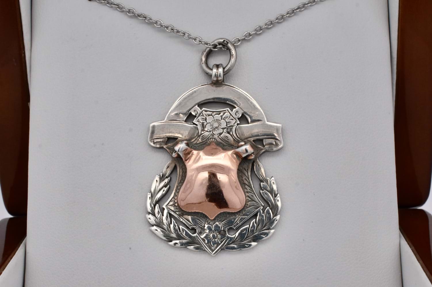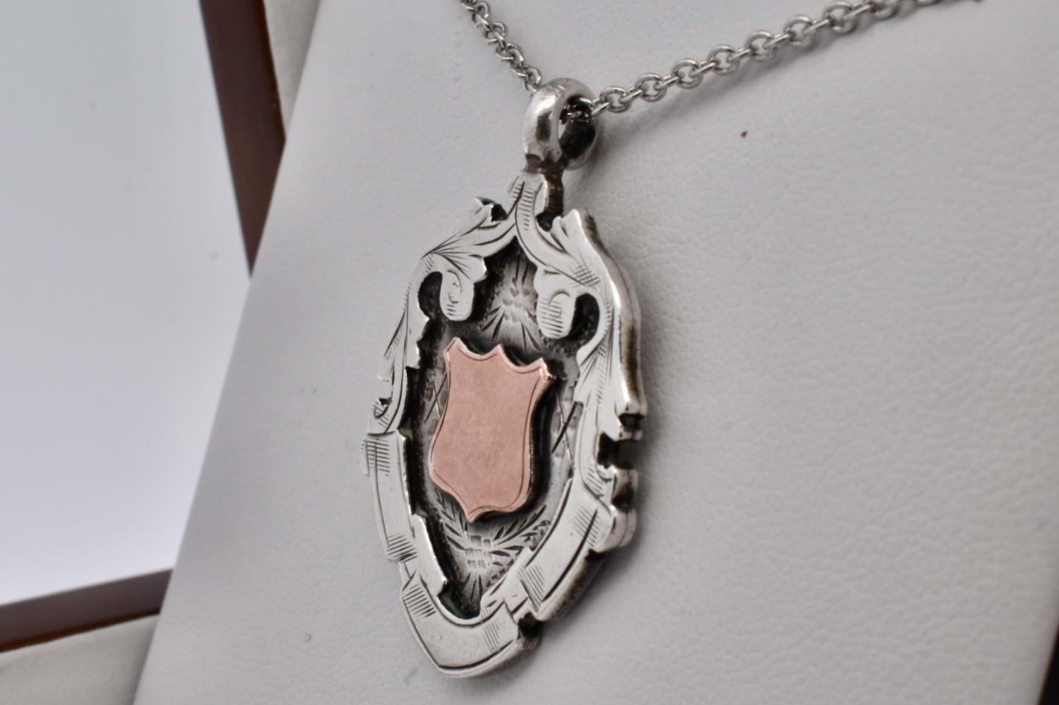 SOLDAntique Sterling Silver & 9ct Rose Gold Engraved Shield Birmingham 1911