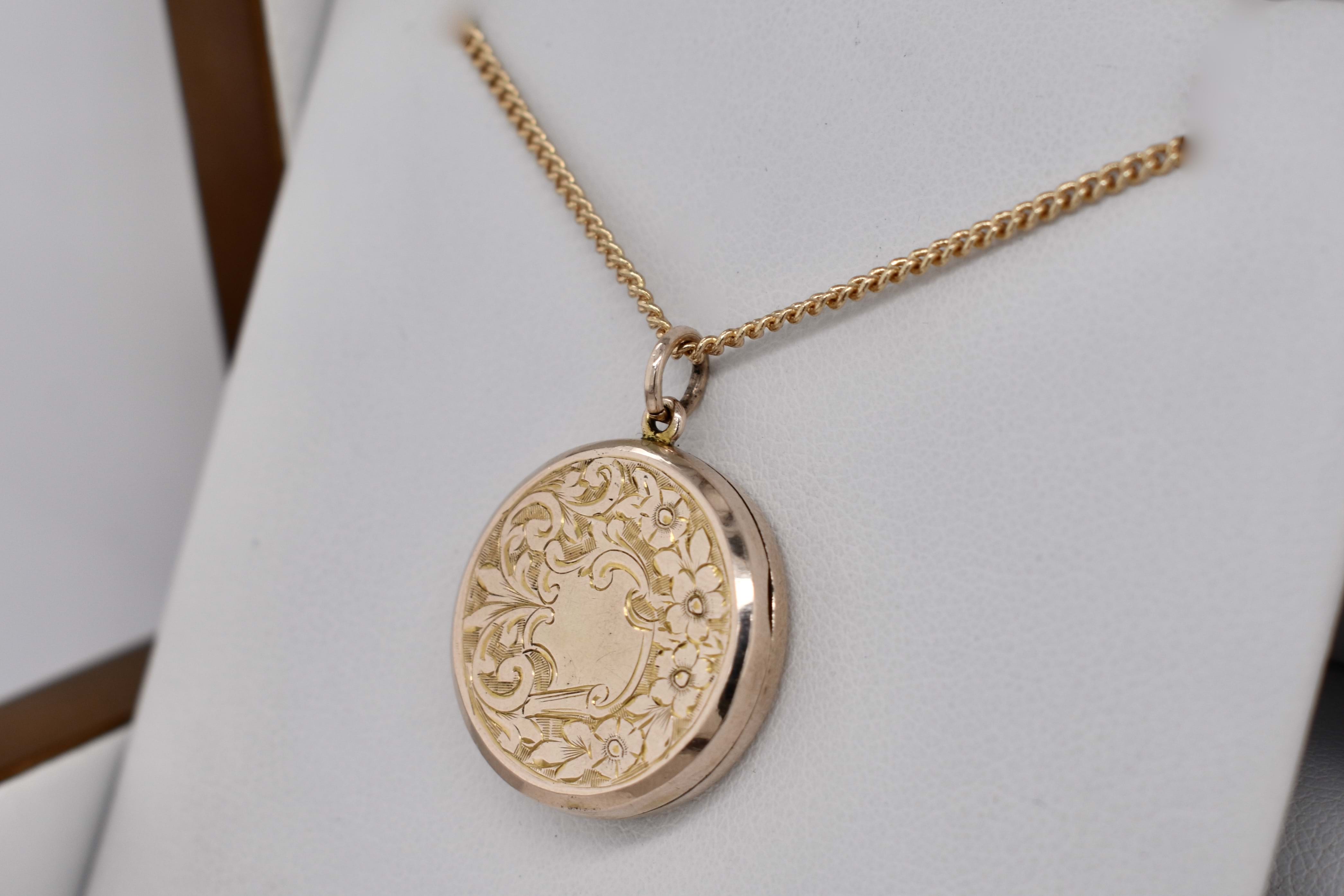 SOLD 9ct Yellow Gold Round Floral Engraved Locket C.1910