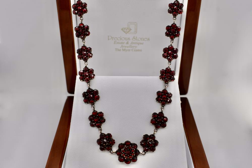 SOLD Antique Bohemian Garnet Cluster Necklace Circa 1870s