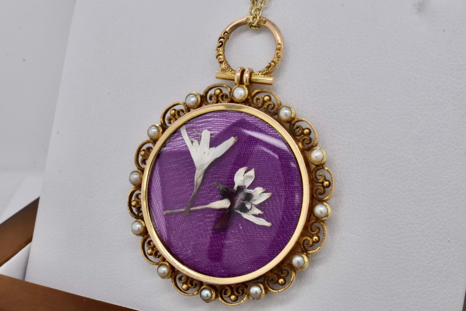 SOLD 15ct Yellow Gold Seed Pearl Glass Locket Circa 1900
