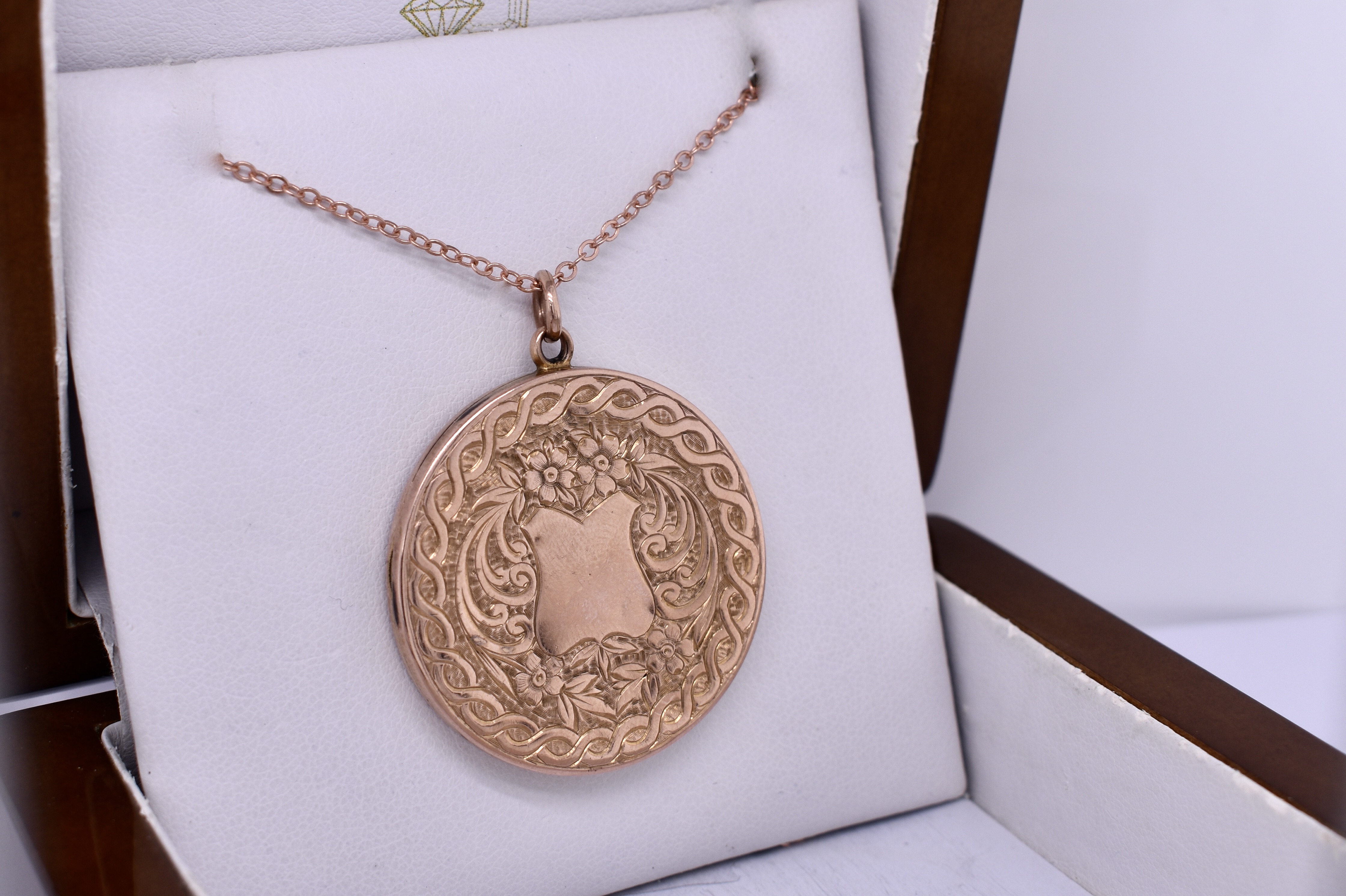 SOLD Antique 9ct Rose Gold B&F 35mm Floral Engraved Locket C.1910