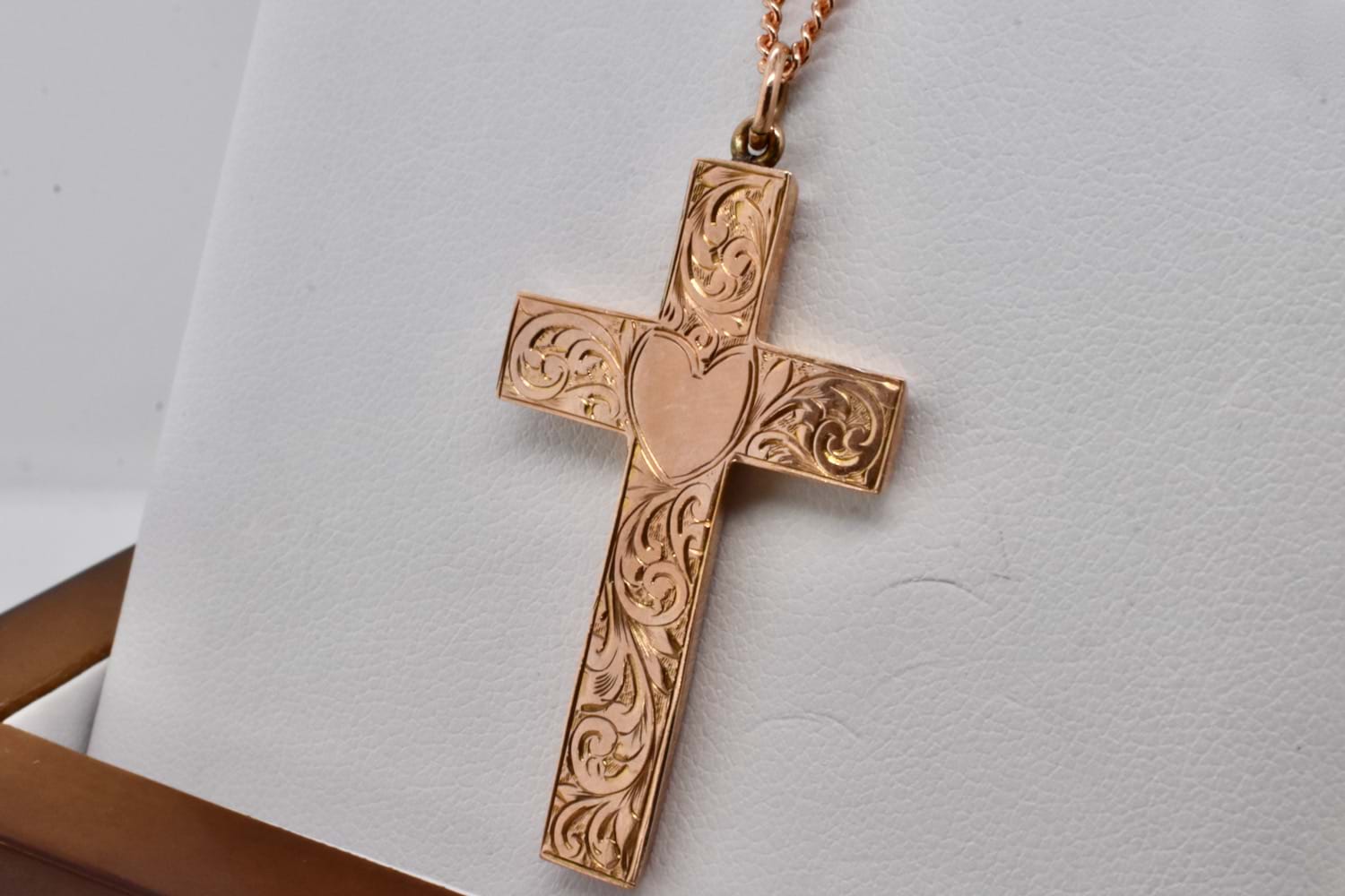 SOLD Antique 9ct Rose Gold Hollow Engraved Cross Pendant