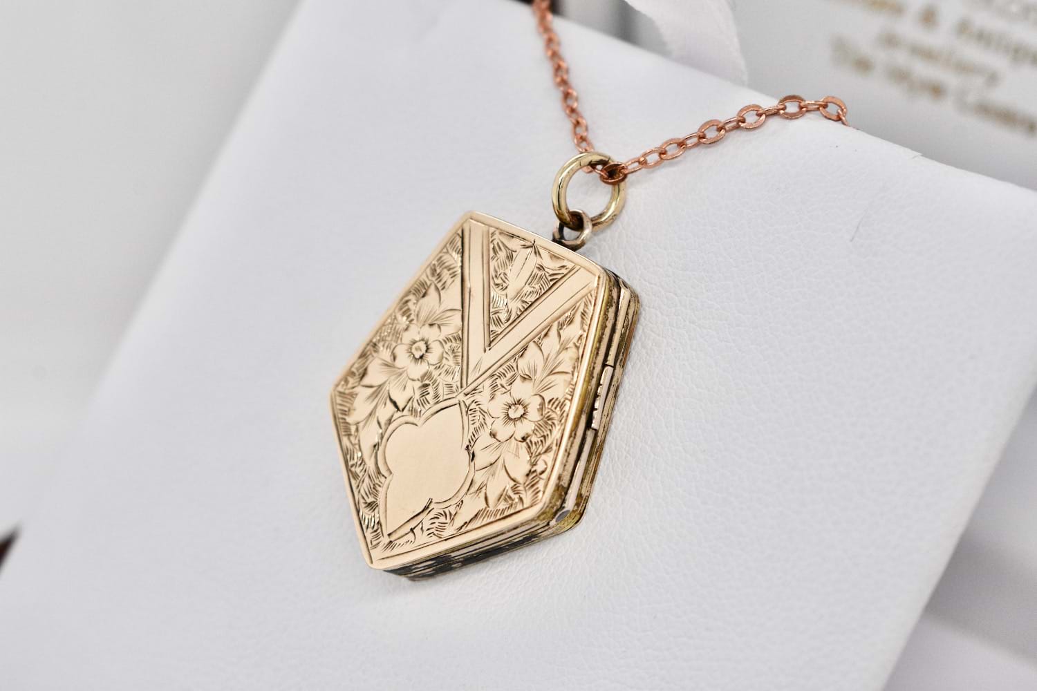 SOLD Antique 8ct Pentagonal Engraved Locket
