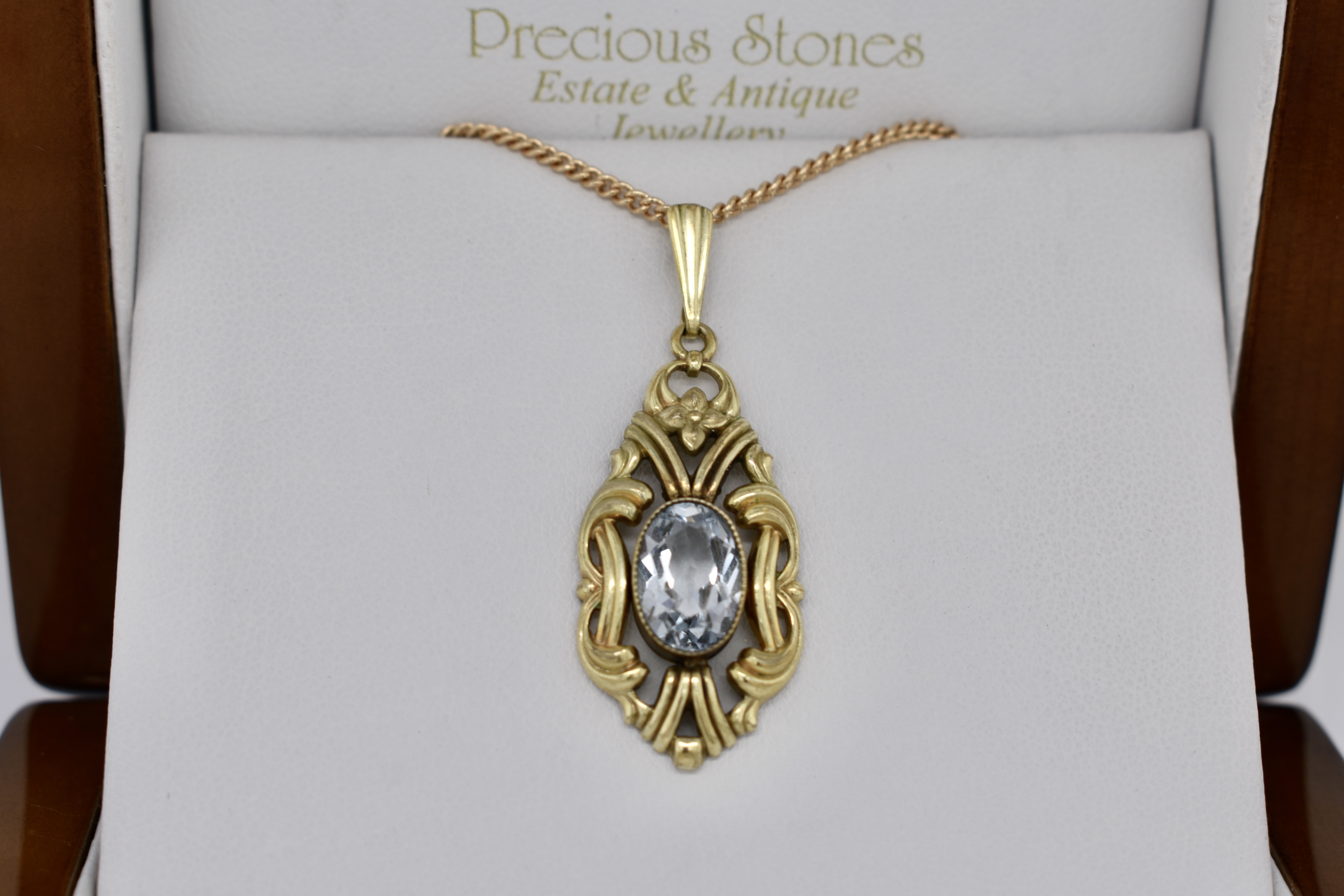 SOLD Antique 9ct Yellow Gold Aquamarine & Seed Pearl Pendant C.1915