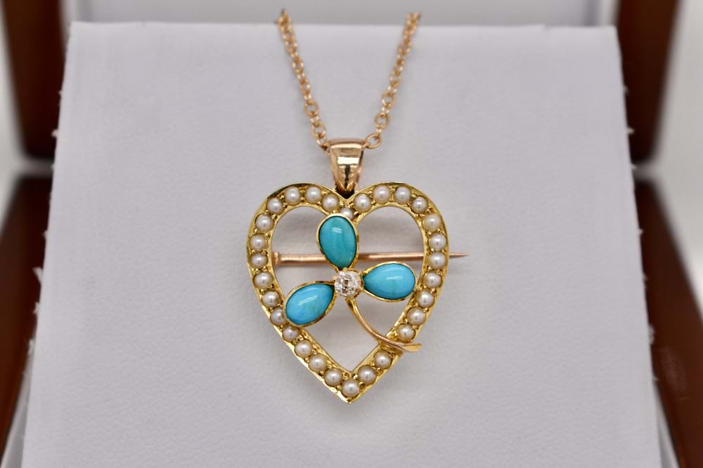 SOLD Antique 15ct & 18ct Turquoise, Seed Pearl & Diamond Brooch/Pendant