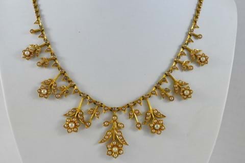 SOLD 15ct & 9ct Yellow Gold Antique Seed Pearl Feature Necklace