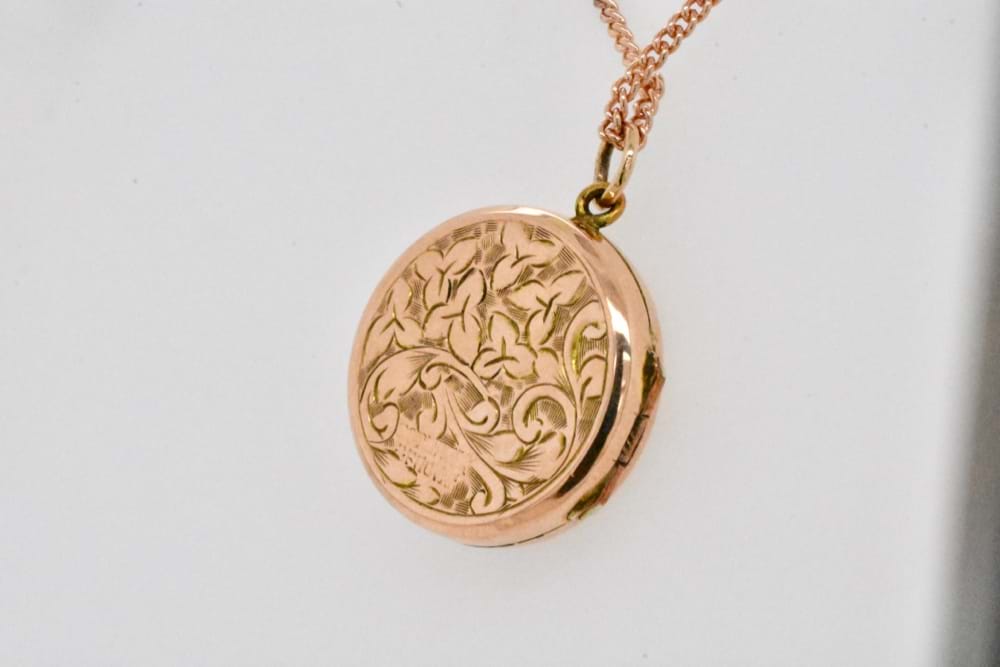 SOLD 9ct FB Rose Gold Round Engraved Antique Locket