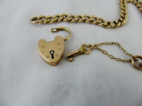 This beautiful 9ct gold solid curb link antique bracelet features a heart padlock with original key opening charm. Independent Valuation Supplied.