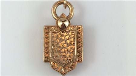 In 9ct rose gold this unusual shield shape Front & Back Locket is circa 1880.