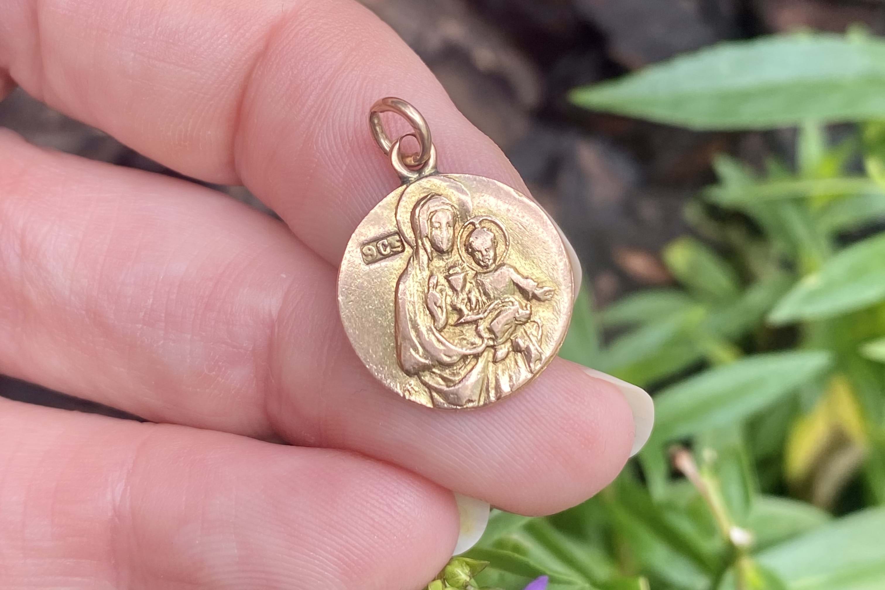 SOLD 9ct Yellow Gold Madonna & Lords Prayer Pendant