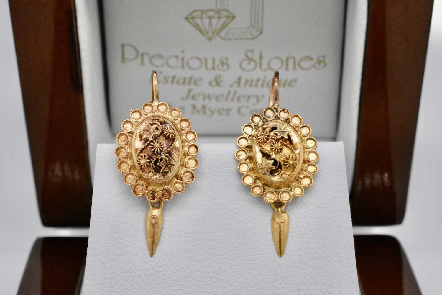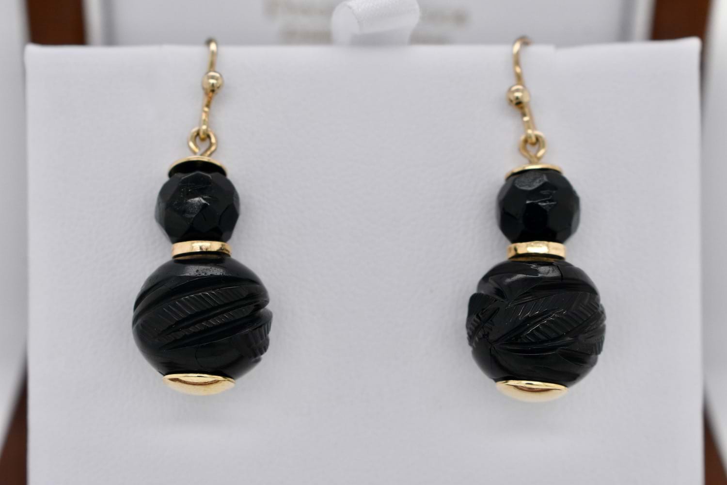 SOLD 9ct Yellow Gold Antique Jet Earrings
