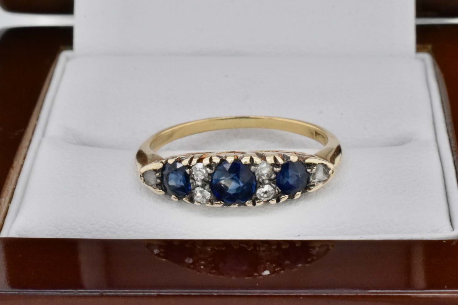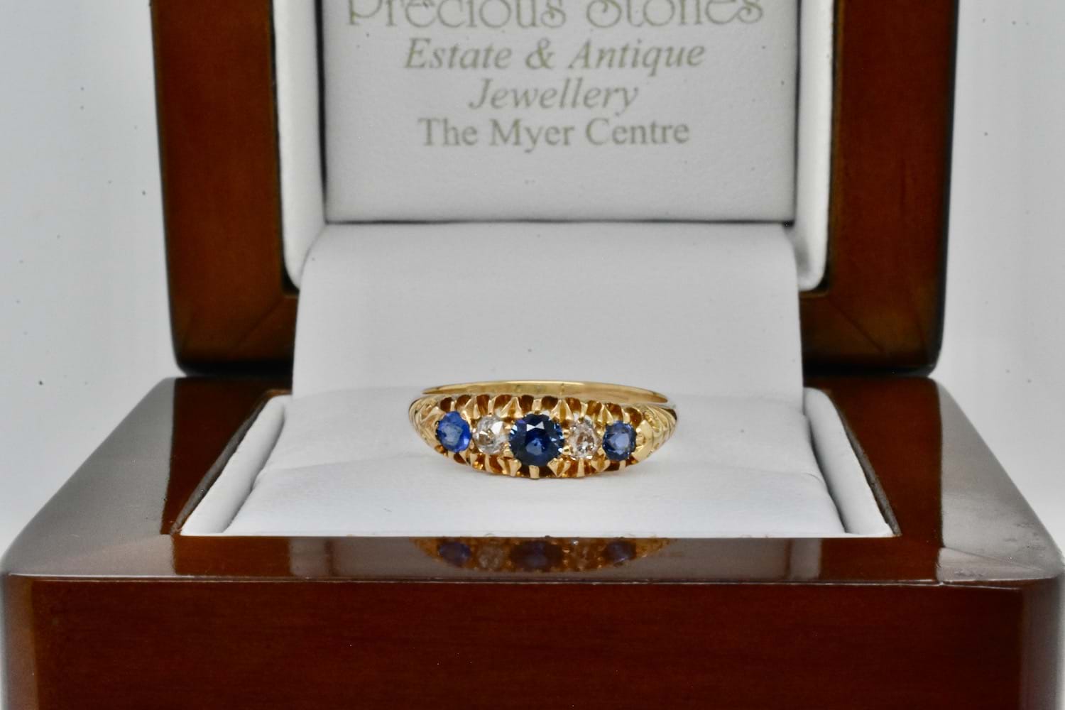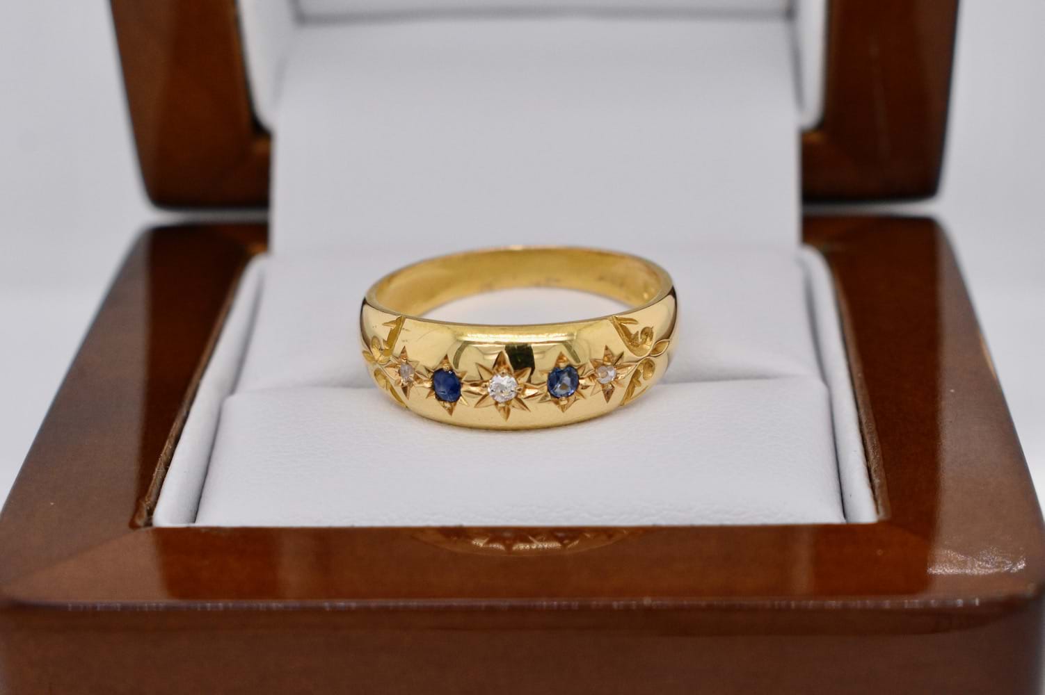 SOLD 18ct Yellow Gold Antique Sapphire & Diamond Ring Hallmarked Birmingham 1904