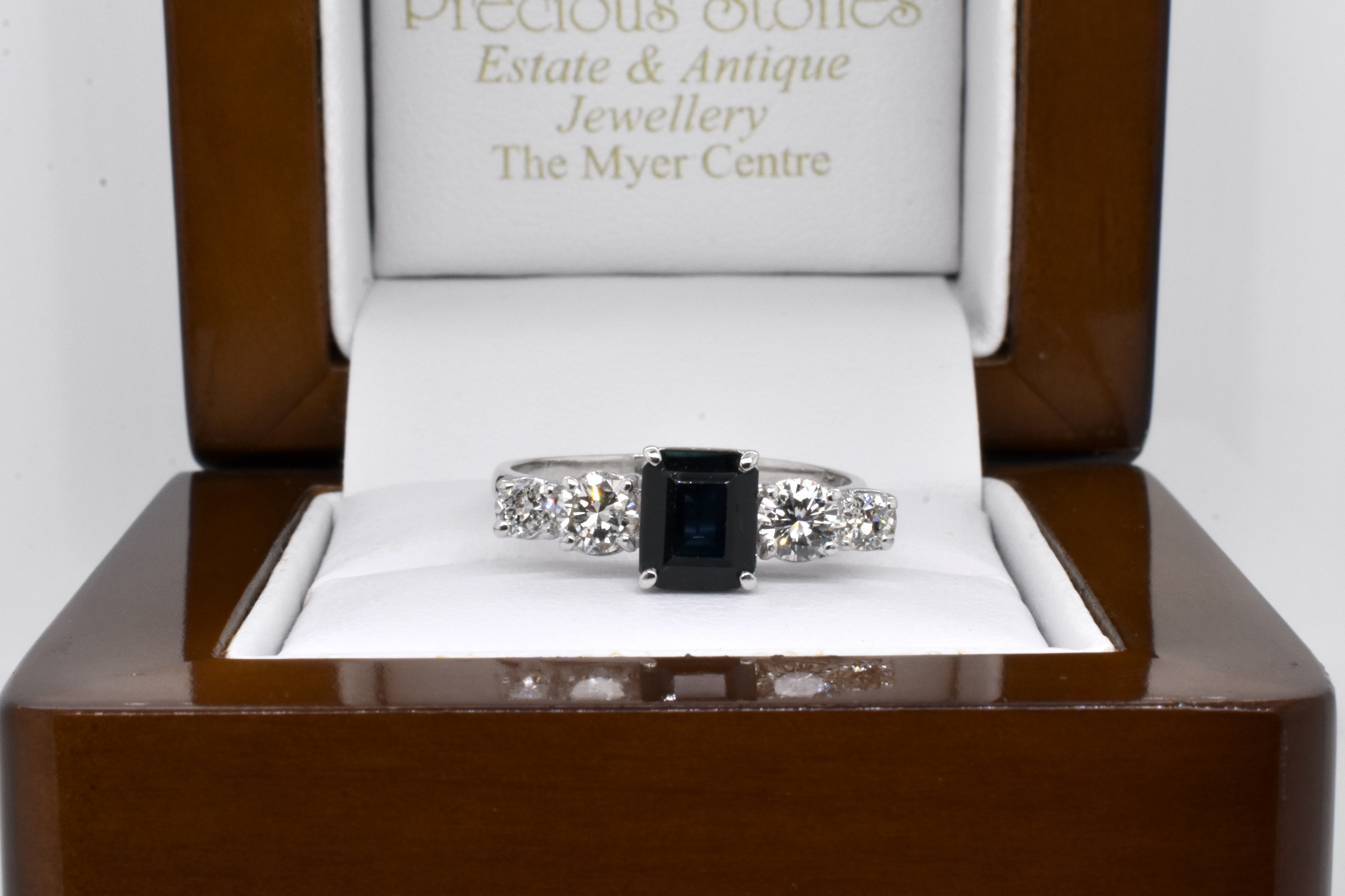 SOLD Vintage 18ct White Gold 1.25ct Sapphire & 0.70ct Diamond Ring
