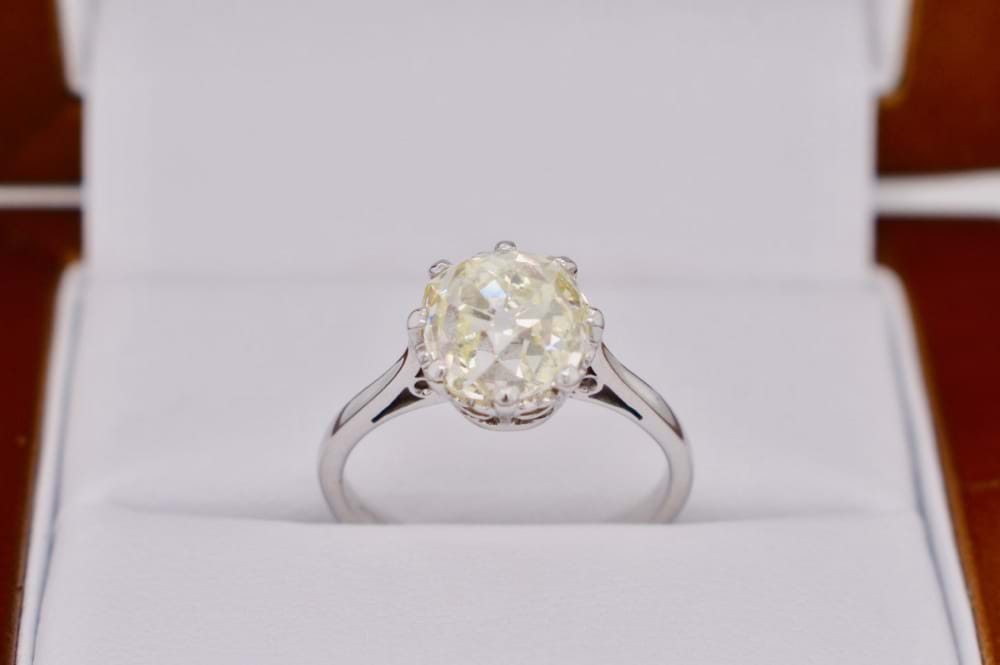 SOLD Platinum & 18ct White Gold 3.50ct Antique Cushion Cut Diamond Solitaire