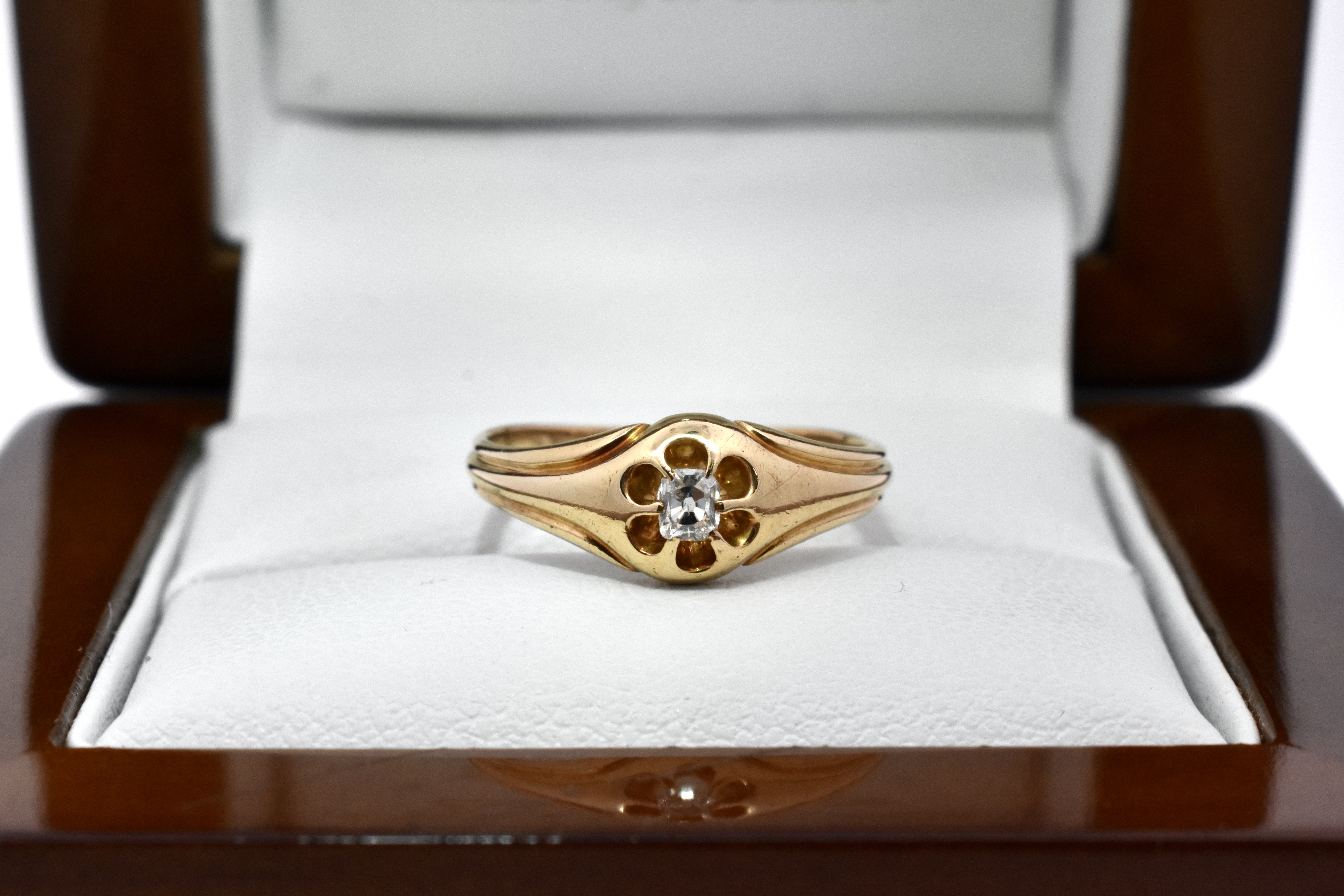 SOLD Antique 18ct Yellow Gold 0.10ct G/VS Diamond (Chipped) Gypsy Ring (H+)