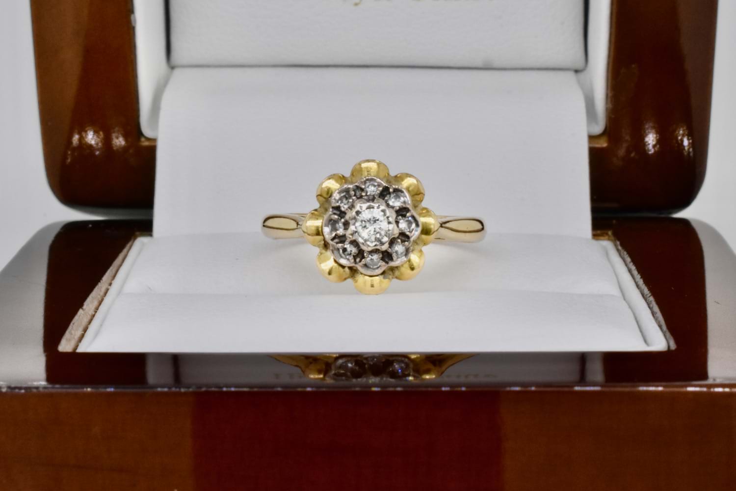 SOLD 1970's 18ct Yellow Gold 0.11ct Diamond Cluster Ring