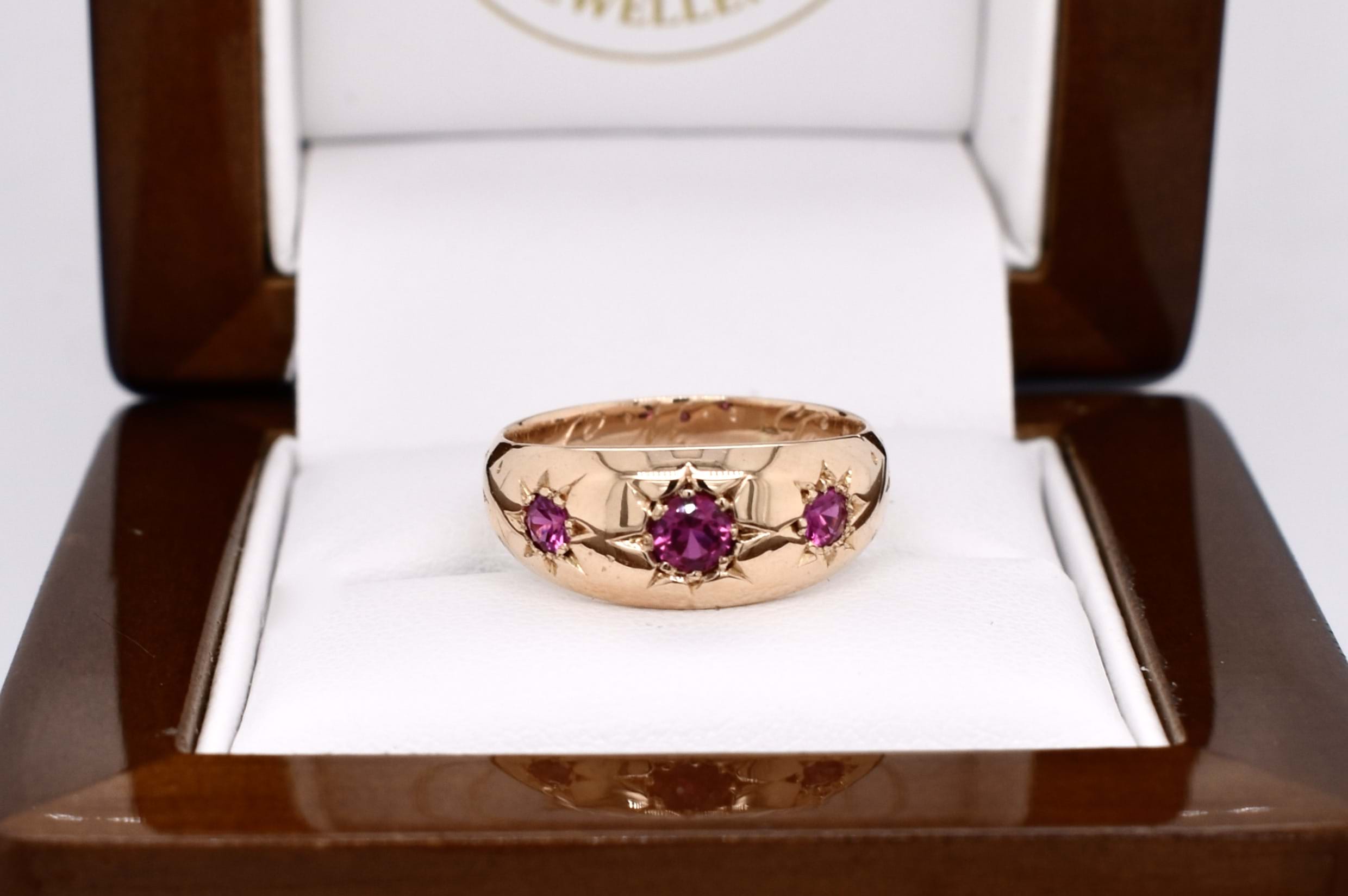 SOLD 14ct Rose Gold Ruby (Synthetic) Star Set Bridge Ring Circa 1900s (L)