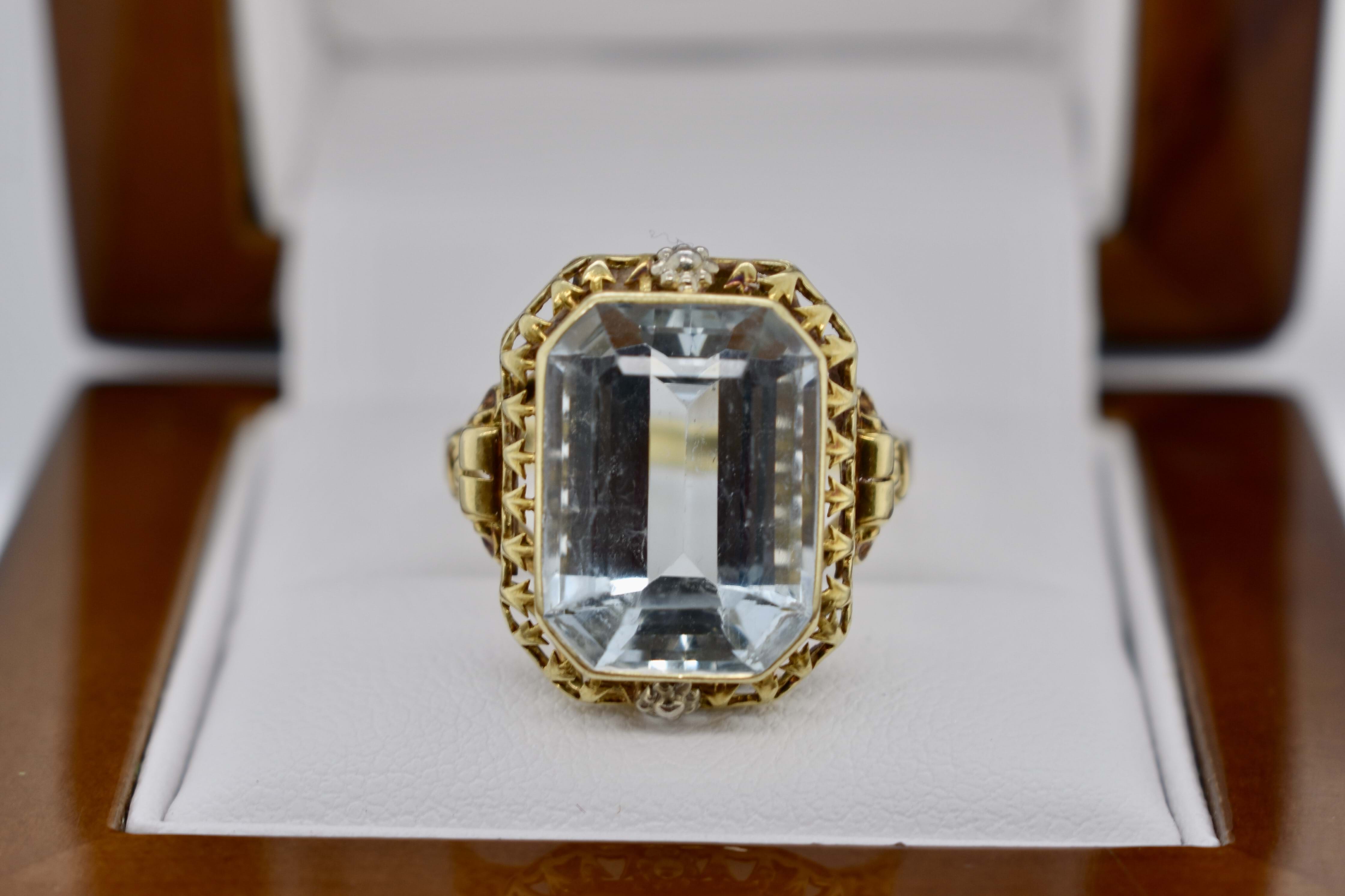 SOLD 14ct Yellow Gold Vintage 7.50ct Emerald Cut Aquamarine Ring (P)