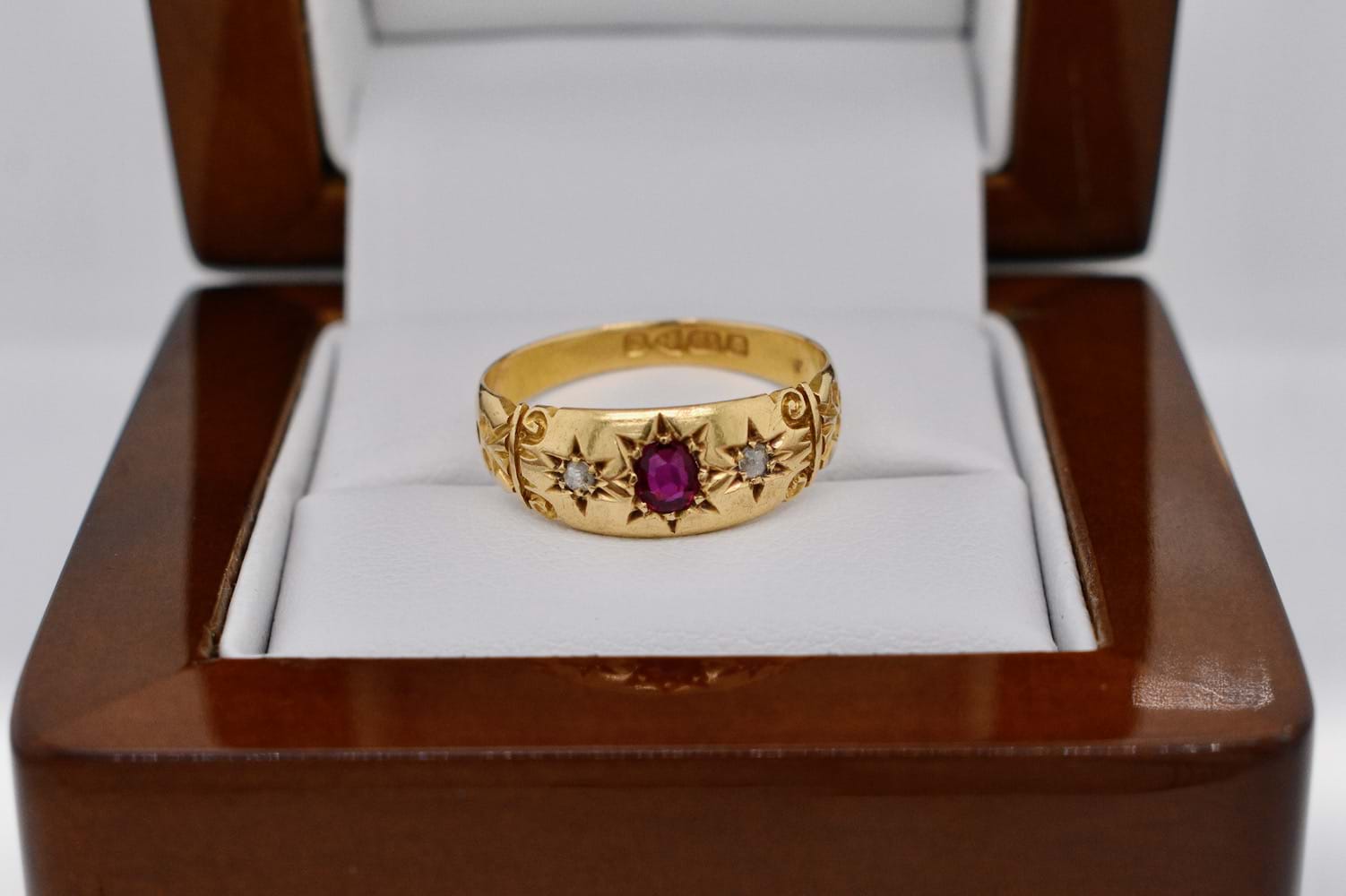 SOLD 18ct Yellow Gold Antique Ruby & Diamond Ring Hallmarked Chester 1904