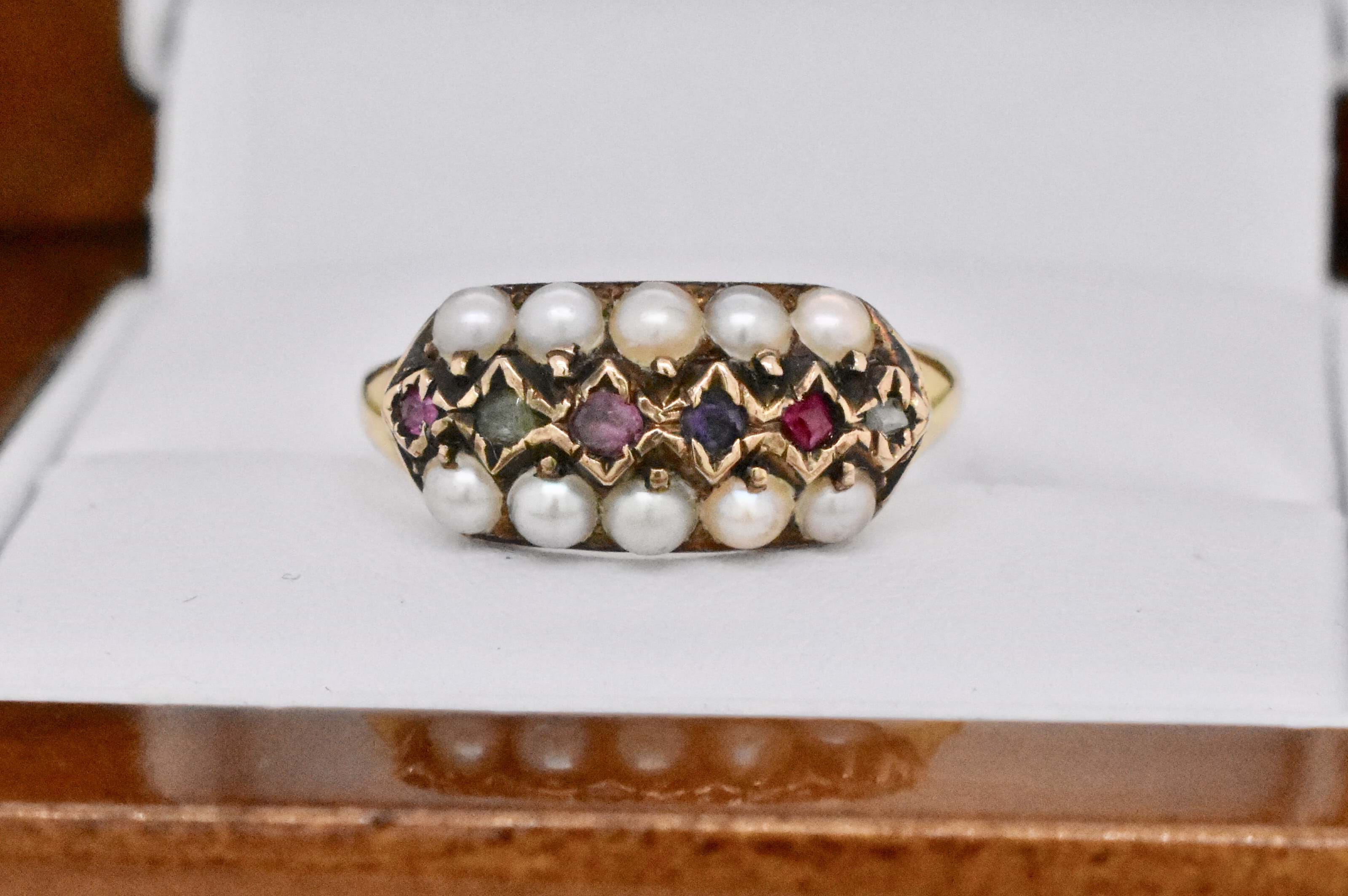 SOLD Antique 9ct Yellow Gold Garnet & Seed Pearl Ring