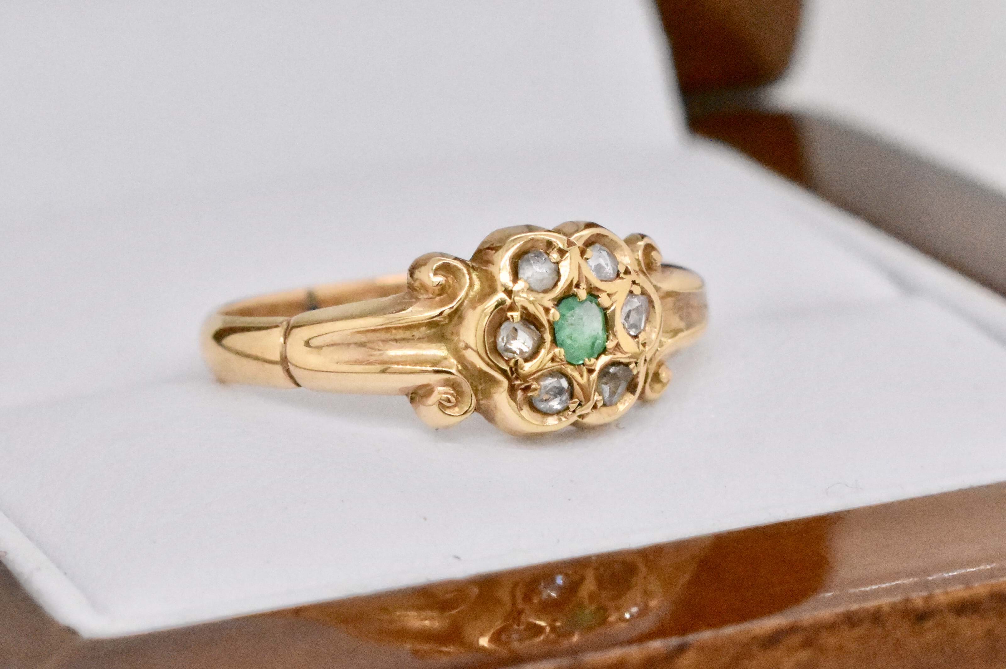 SOLD 18ct Antique Emerald & Diamond Daisy Ring