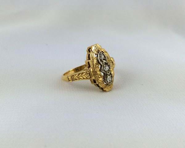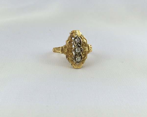 This 14ct gold original Art Deco ring features 3 Diamonds (H/SI) totalling 0.20cts. Independent Valuation supplied.