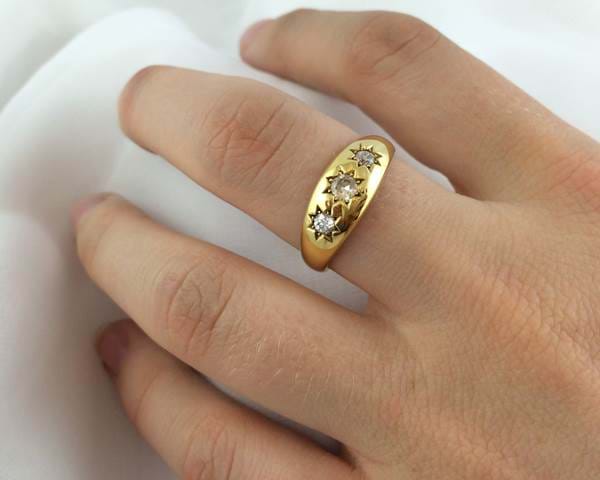 With three old European cut Diamonds GSI totalling 0.25cts this 18ct gold ring makes a beautiful gift for any occasion. Birmingham 1928. Independent Valuation supplied.