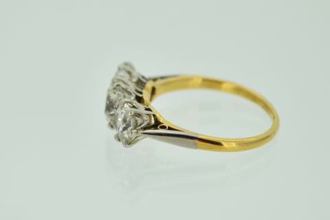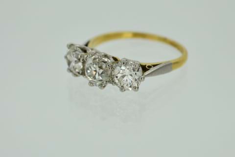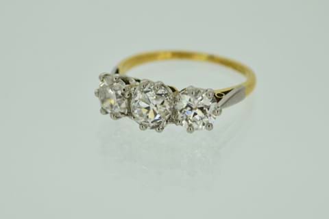 Totally divine! This beautiful three stone diamond ring features three original old European cut diamonds, the sparkliest of the old cut diamonds! The centre diamond is an impressive 1.05cts, with a 0.60cts and a 0.65ct on either side. The diamonds are (rightfully so) set into Platinum with an 18ct yellow gold shank and is dated circa 1940's. Independent Valuation Supplied