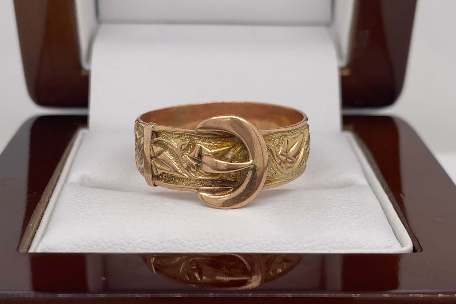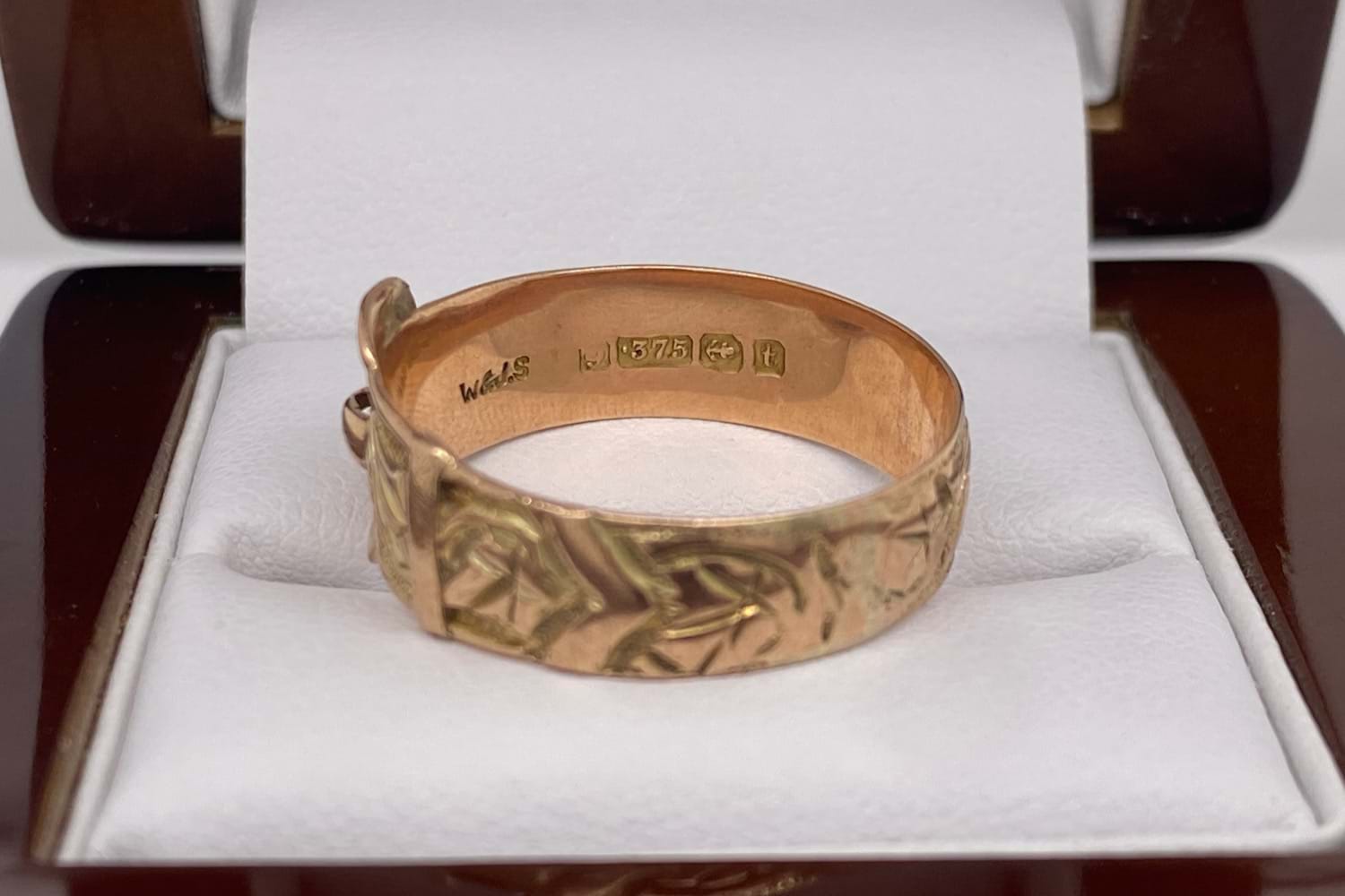 SOLD 9ct Old Gold Antique Buckle Ring 1918