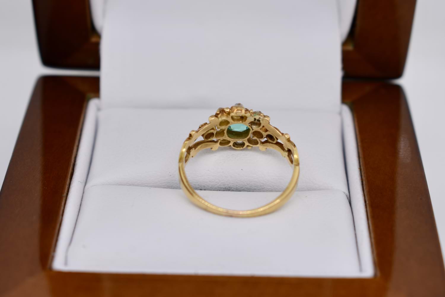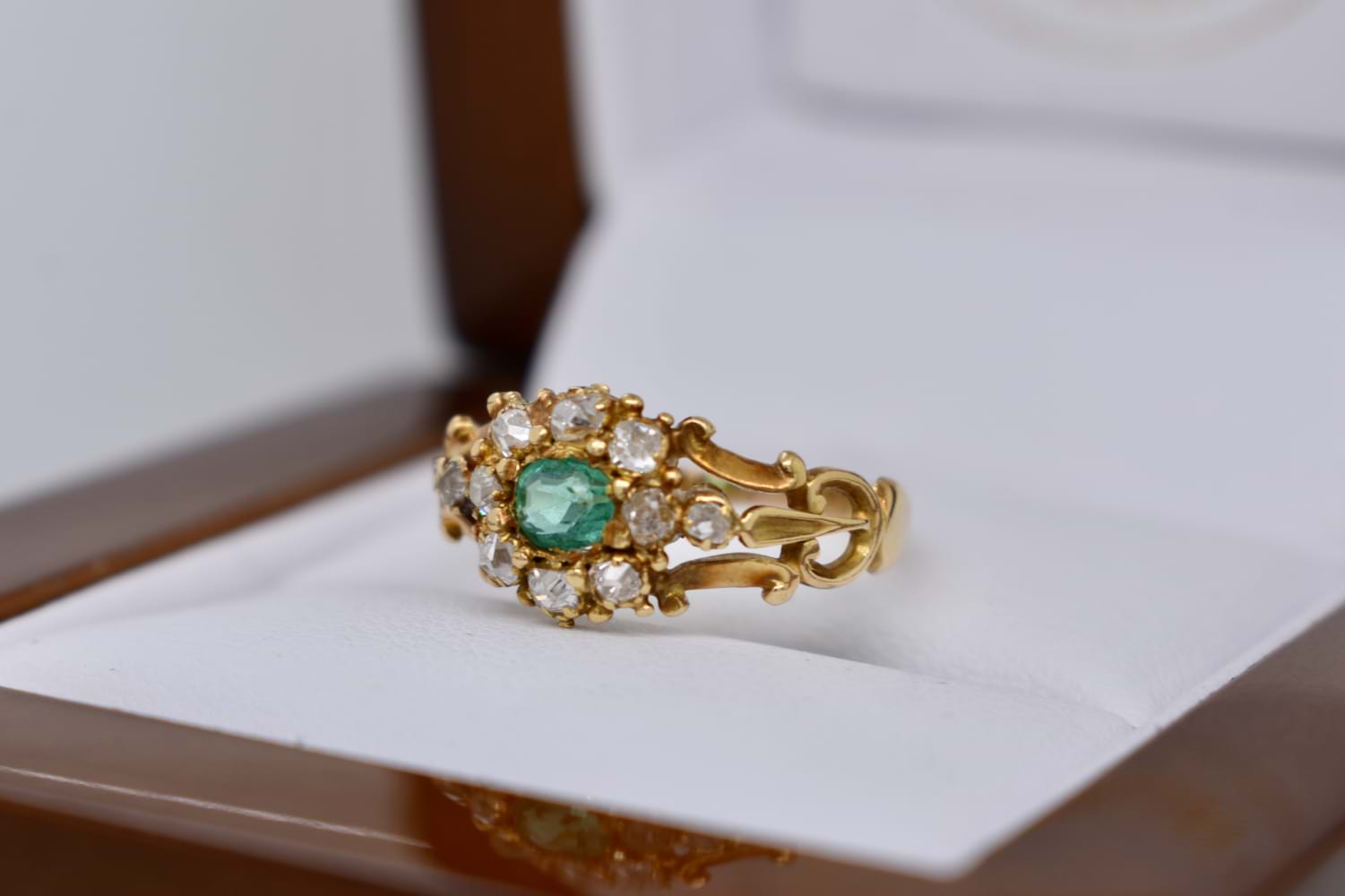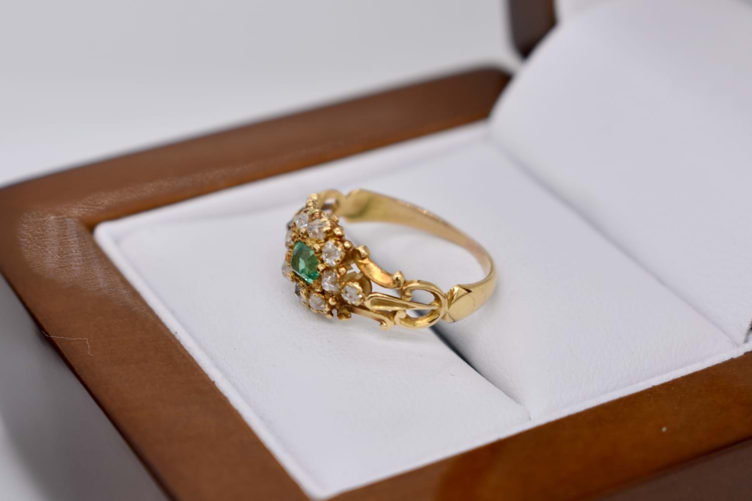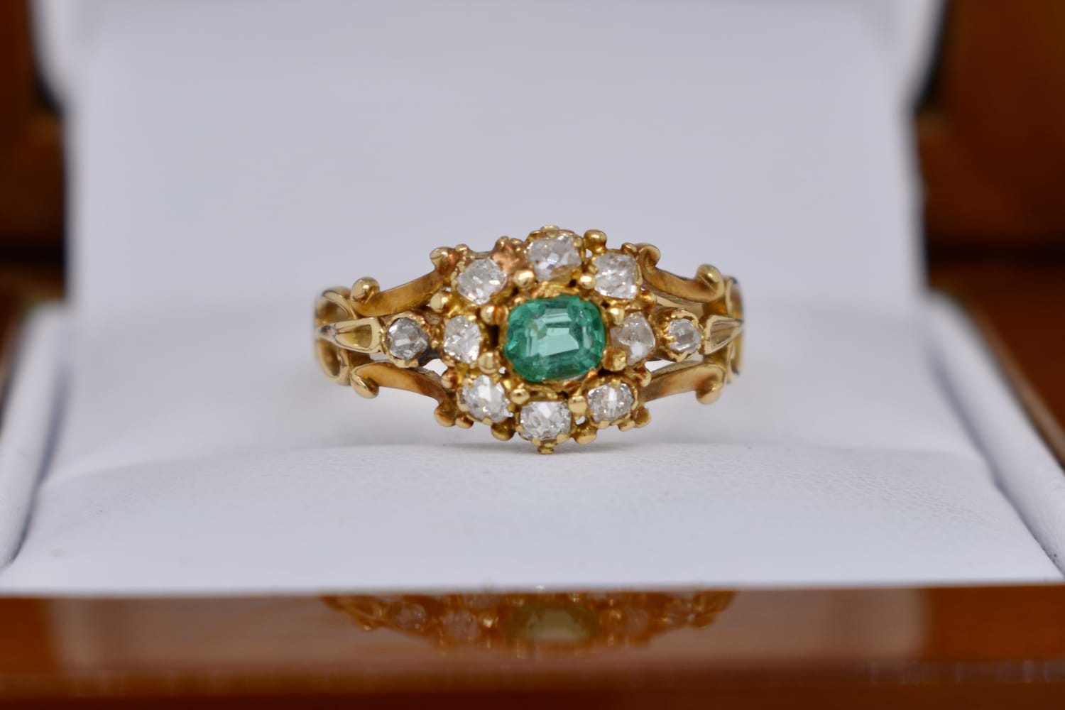 SOLD Antique 18ct Yellow Gold 0.20ct Emerald & 0.30ct Diamond Cluster Ring