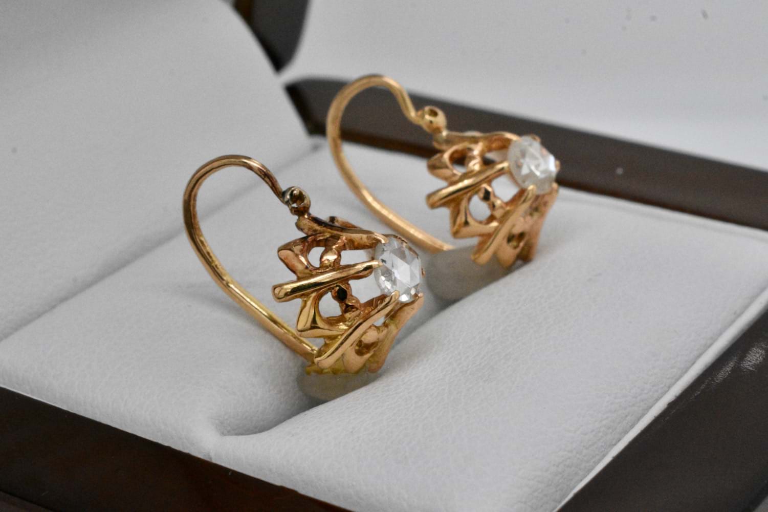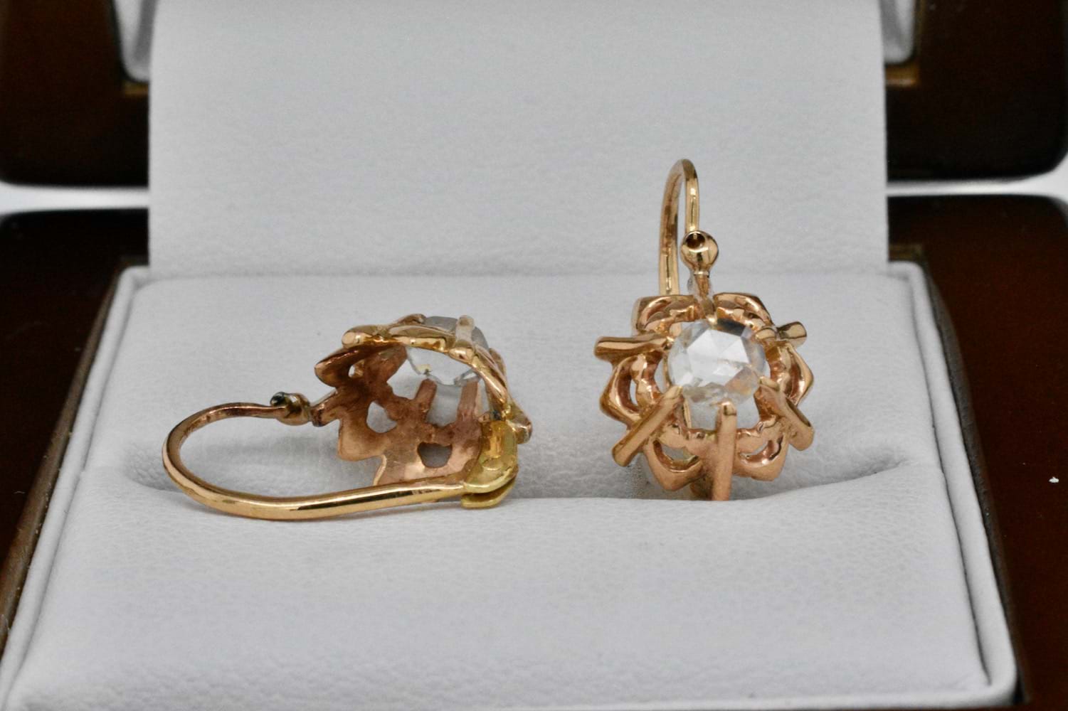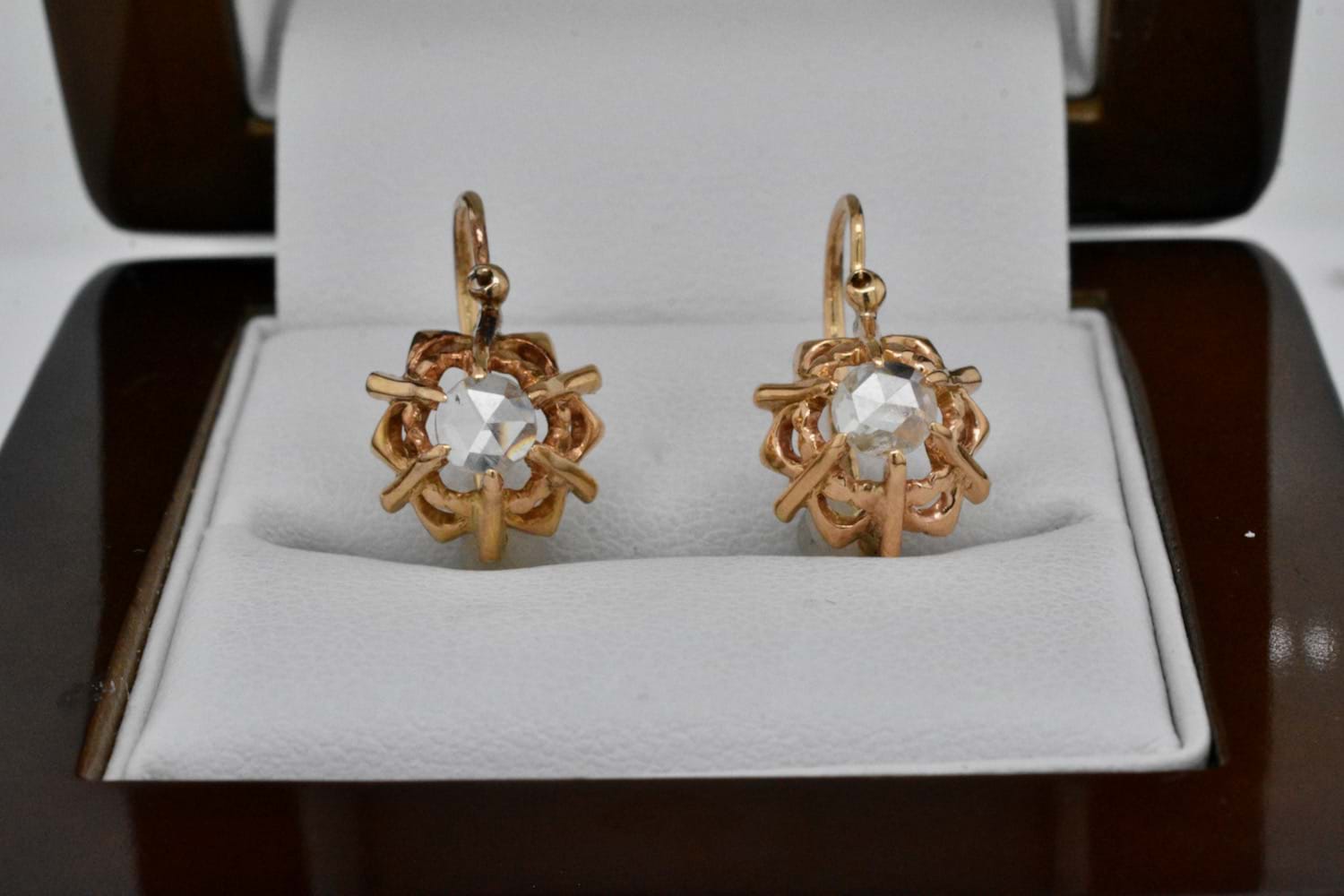 SOLD Antique 18ct Yellow Gold 0.34ct Rose Cut Diamond Earrings